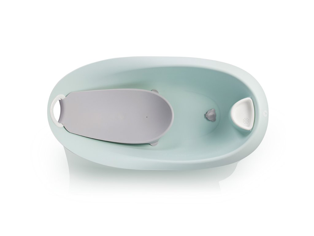 - 0-6 hónapos gyermekek számára: A kád ergonomikus formájú alátéttel van felszerelve, amely megakadályozza a baba elcsúszását, és optimális helyzetben tartja fürdés közben. A alátét stabilan rögzül, és biztosítja a baba biztonságos elmerülését a vízben.