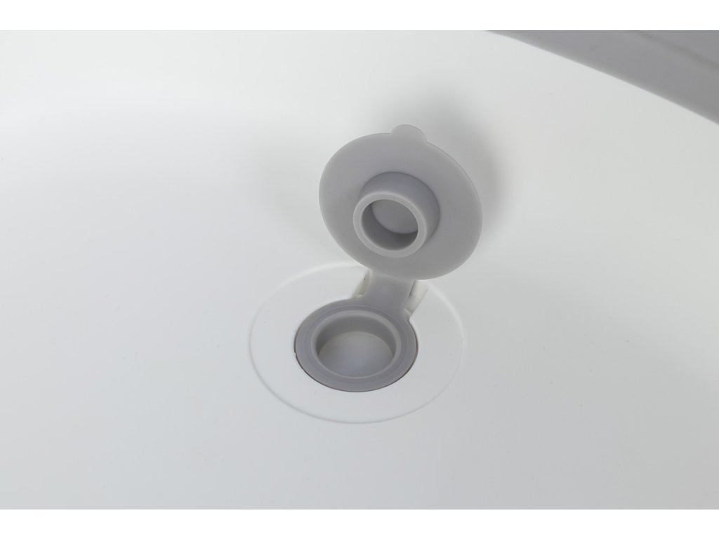 Vízelvezető rendszer: • Szilikon kupak a könnyű vízelvezetés érdekében • Egyszerűen helyezze a tálcát a kádba vagy a zuhanyba, és nyissa ki a dugót • Gyors és higiénikus ürítés
