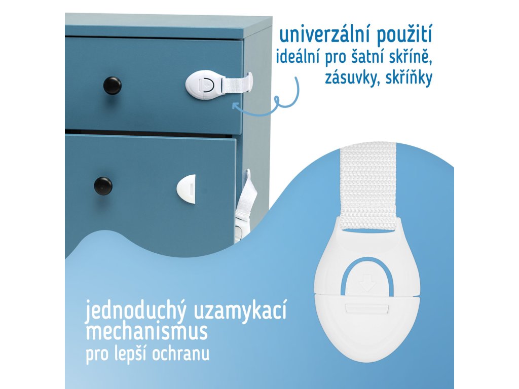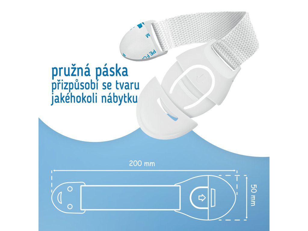 Univerzális használat - az állítható hosszúságnak köszönhetően a biztonsági eszköz szinte minden háztartási készülékhez és bútorhoz alkalmas, bármilyen méretű. Használható szekrények, fiókok kinyitása elleni védelemként, ajtózárként és egyéb belső elemekként.