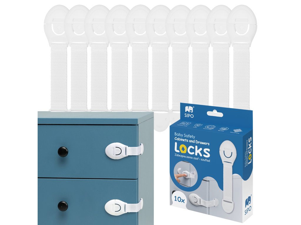 A SIPO szett 10 db biztonsági zárat tartalmaz szekrényekhez és fiókokhoz. Ideális megoldás kisgyermekes szülők számára, akik biztonságos otthont szeretnének teremteni számukra.