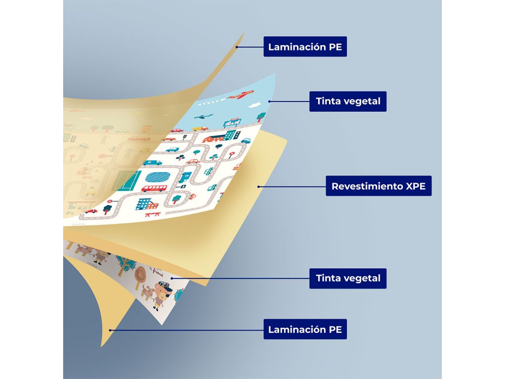 Vidám kétoldalas összecsukható szőnyeg számos felhasználási lehetőséget kínál. A szőnyeg használható játékra, edzésre, pihenésre otthon vagy útközben. Vidám kétoldalas nyomattal gyermeke jól fog szórakozni, ideális a koordináció, a gyerekek fantáziájának és vizuális érzékelésének fejlesztésére.