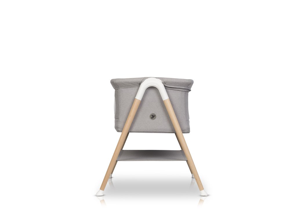 Könnyű és stabil szerkezetCsak súlyú 6,5 kg A kiságy könnyen hordozható a szobák között. A stabilitást a következők biztosítják: széles, stabil és csúszásmentes lábak természetes fából készült.