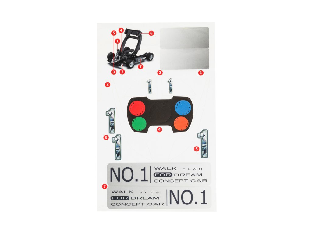 Megjegyzés: A csomag tartalmaz egy matricakészletet a "versenyző" díszítésére