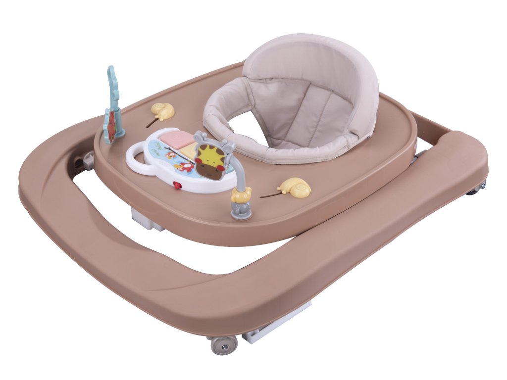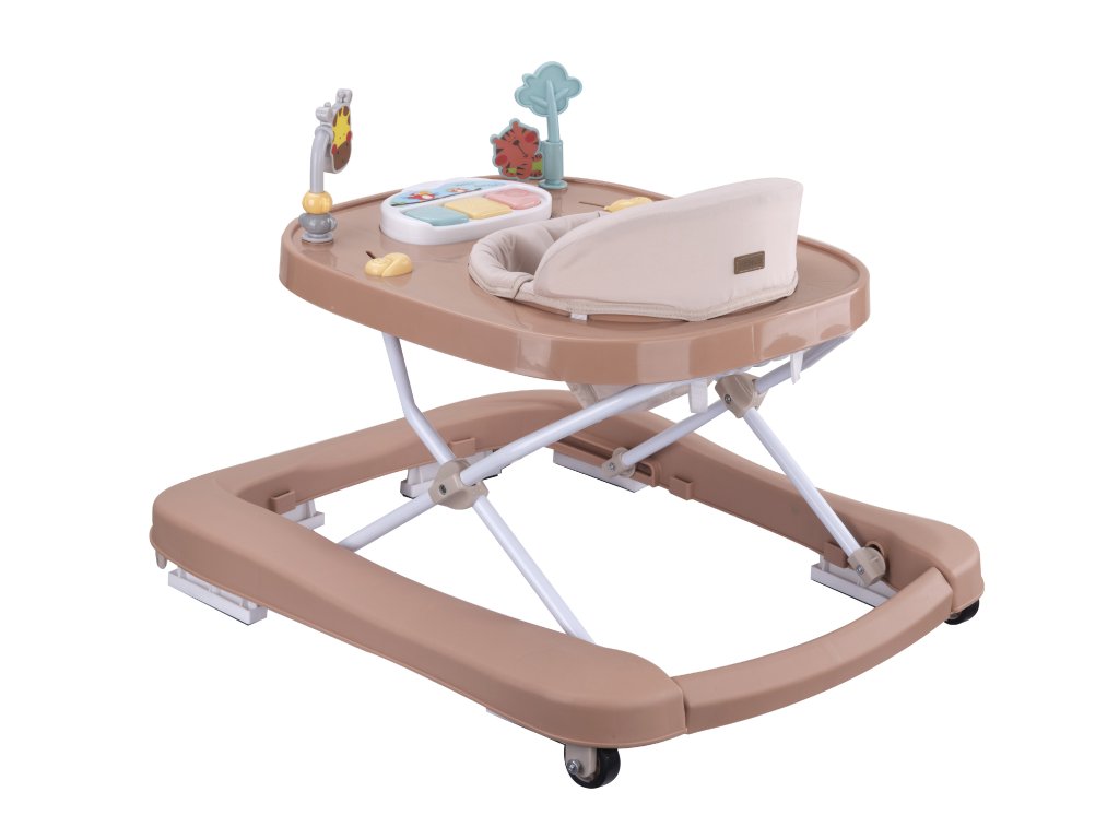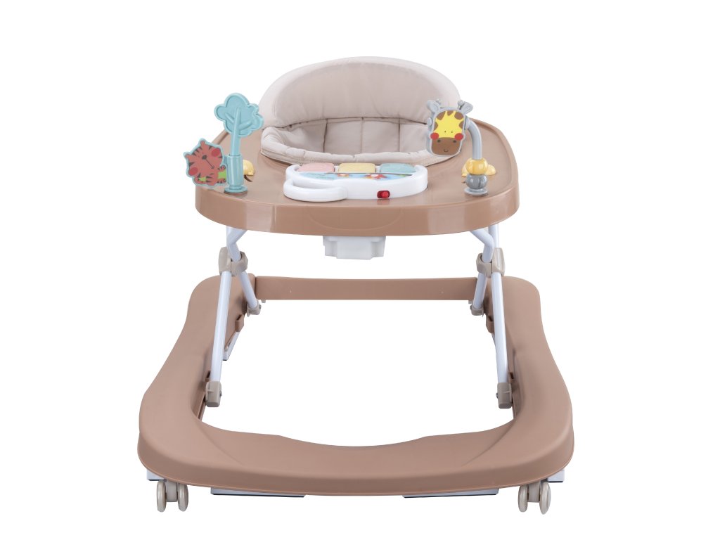- A sétáló tartalmaz egy zenei tevékenységpanelt, amely fejleszti a gyermek hallási, tapintási és koordinációs készségeit.