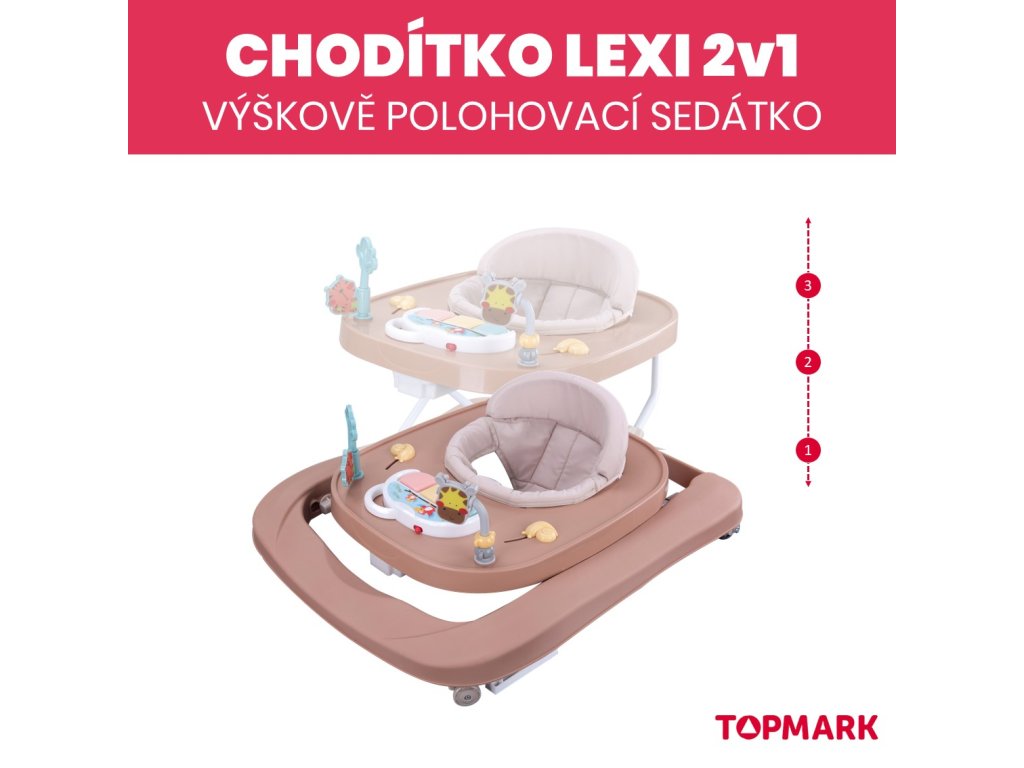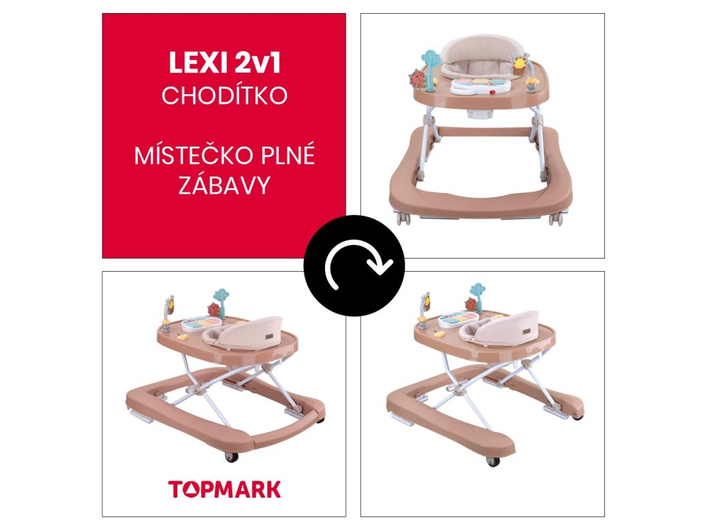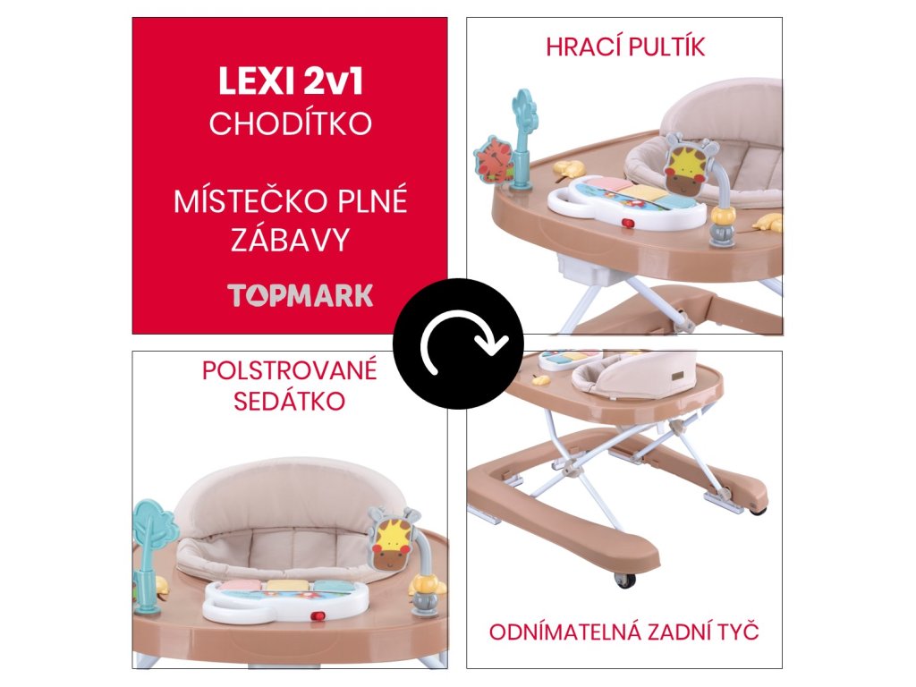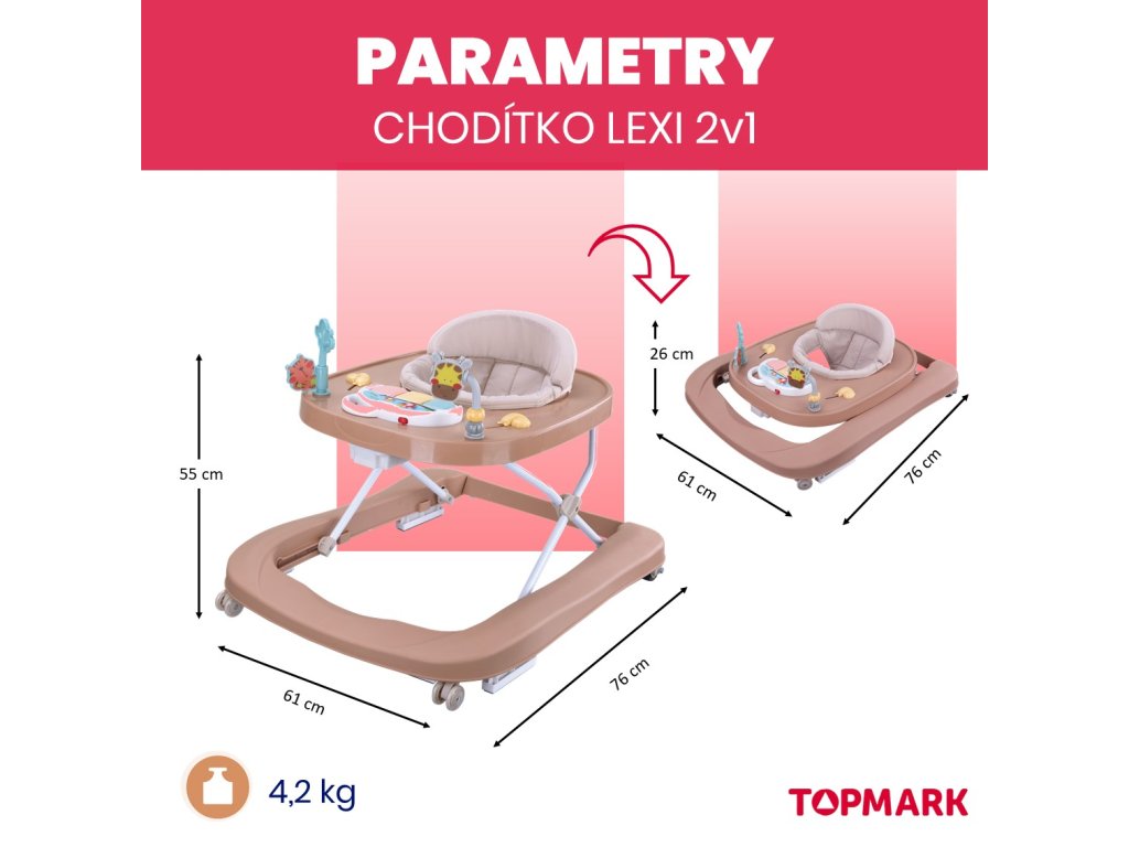 - A hátsó rúd eltávolítása után a sétáló az első lépésekhez tevékenységi sétálóvá alakítható, a sétáló tolható.