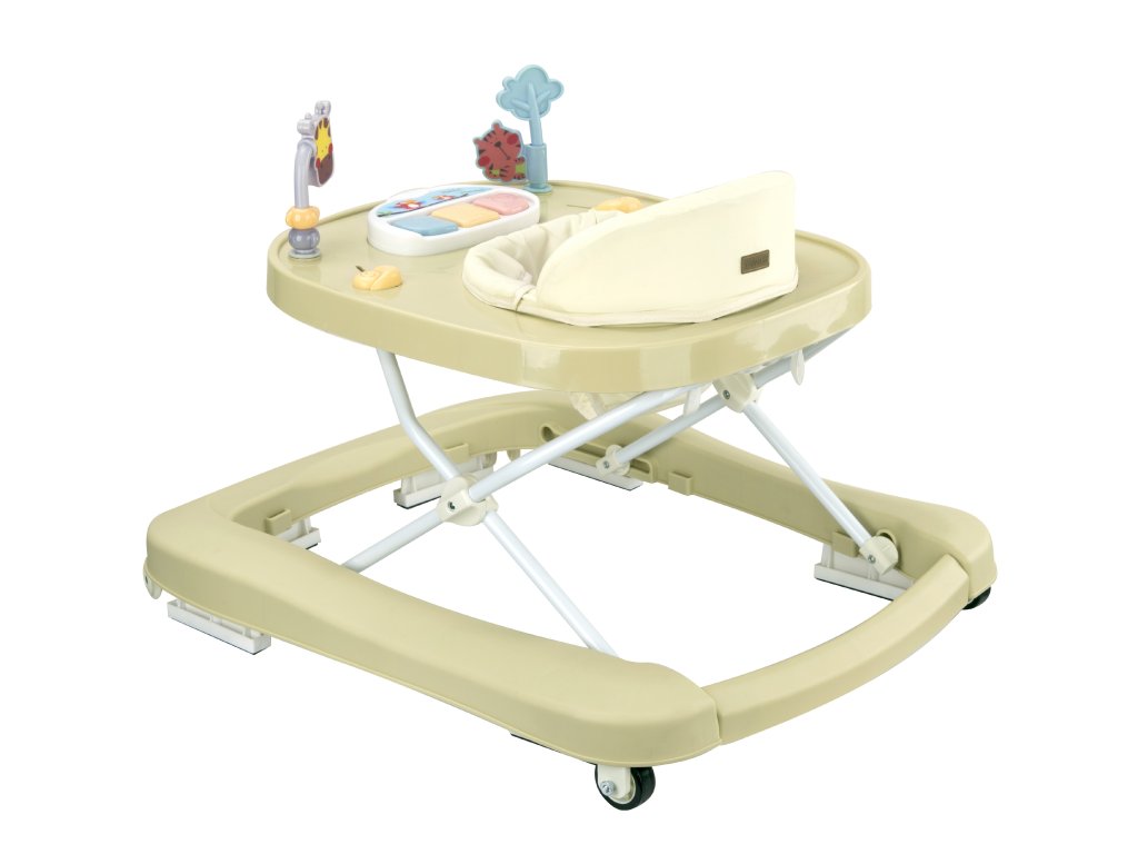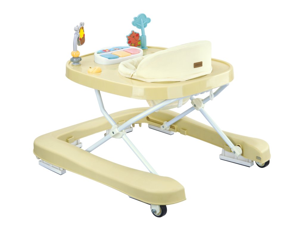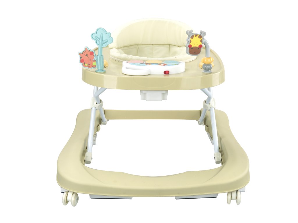 - A sétáló tartalmaz egy zenei tevékenységpanelt, amely fejleszti a gyermek hallási, tapintási és koordinációs készségeit.