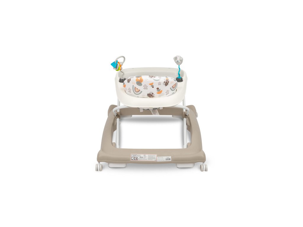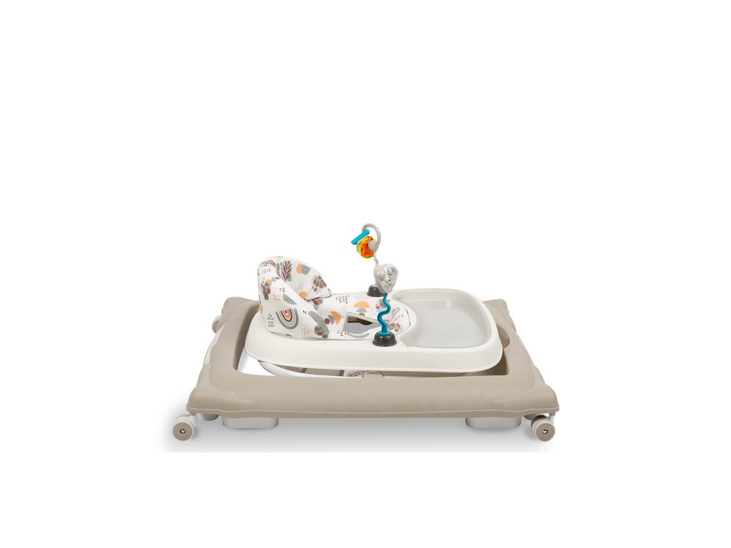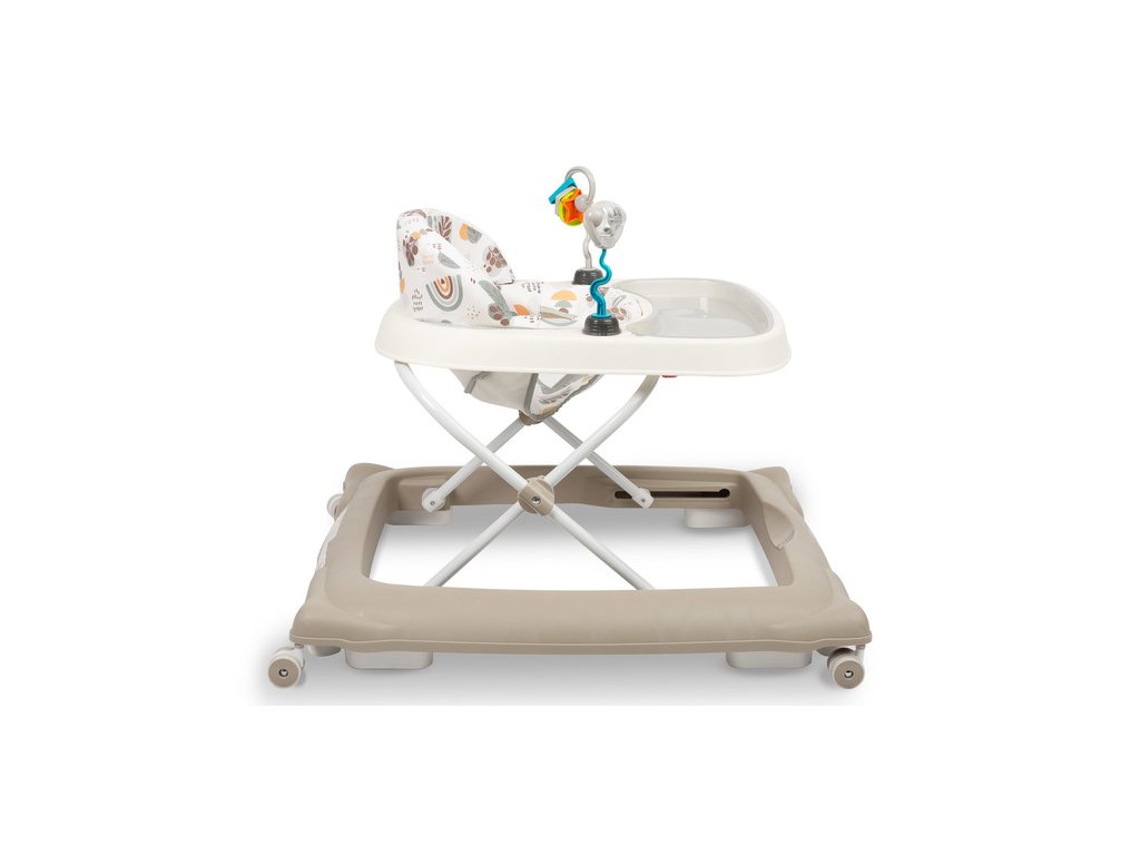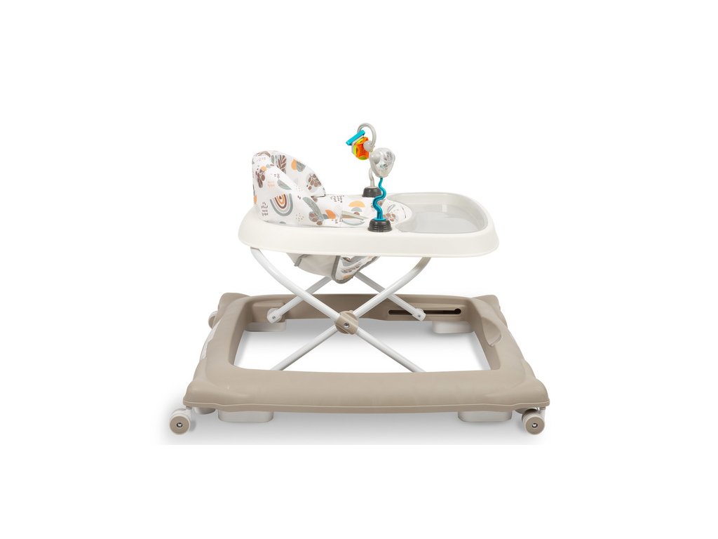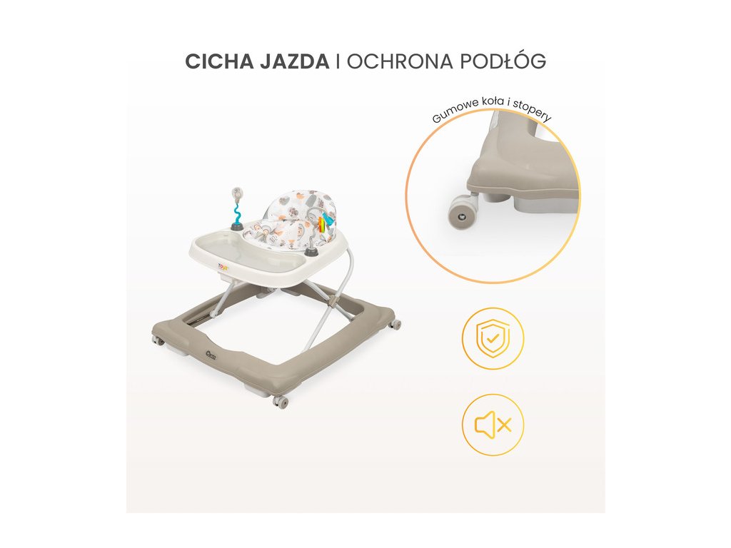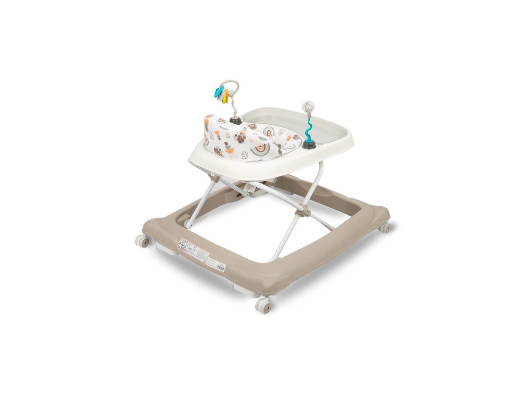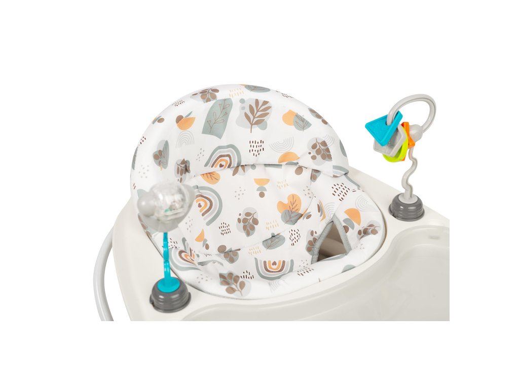 A széles, levehető tálca ideális segítő játék és etetés közben. Elhelyezheti rajta a kedvenc játékokat, amelyek szórakoztatják a gyermeket mozgás közben, vagy használhatja praktikus felületként tízórai idején. A tálca könnyen tisztítható, amit a mindennapi használat során értékelni fog.