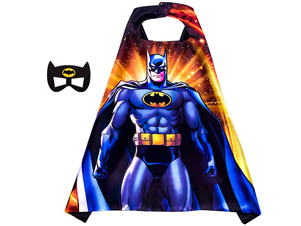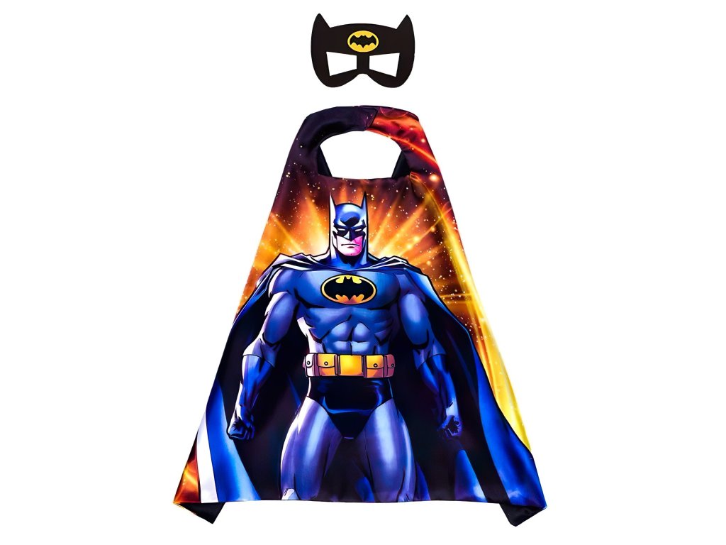 A jelmez a következőkből áll köpenya híres valósághű lenyomatávalszuperhősés feketemaszkoklogóvaldenevérIdeális választáskarnevál, születésnapi buli vagy otthoni játék éskaland.