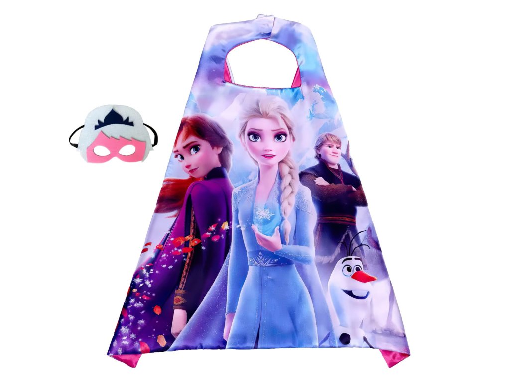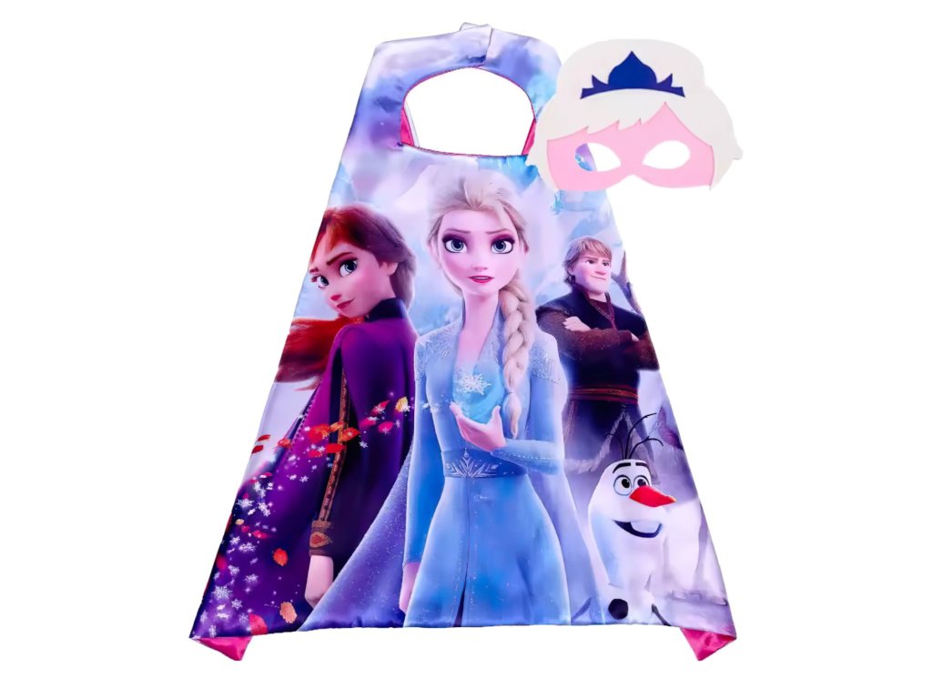 Köpenykedvenc karakterekkel díszített, részletes mintával –Elza, Anna, Kristoff és a vidám hóemberOlafígy a gyermek könnyen elrepülhet egy mesevilágbaArendelle. A készlet tartalmaz mégmaszk tematikusElza, ami teljessé teszi a varázslatos megjelenést.