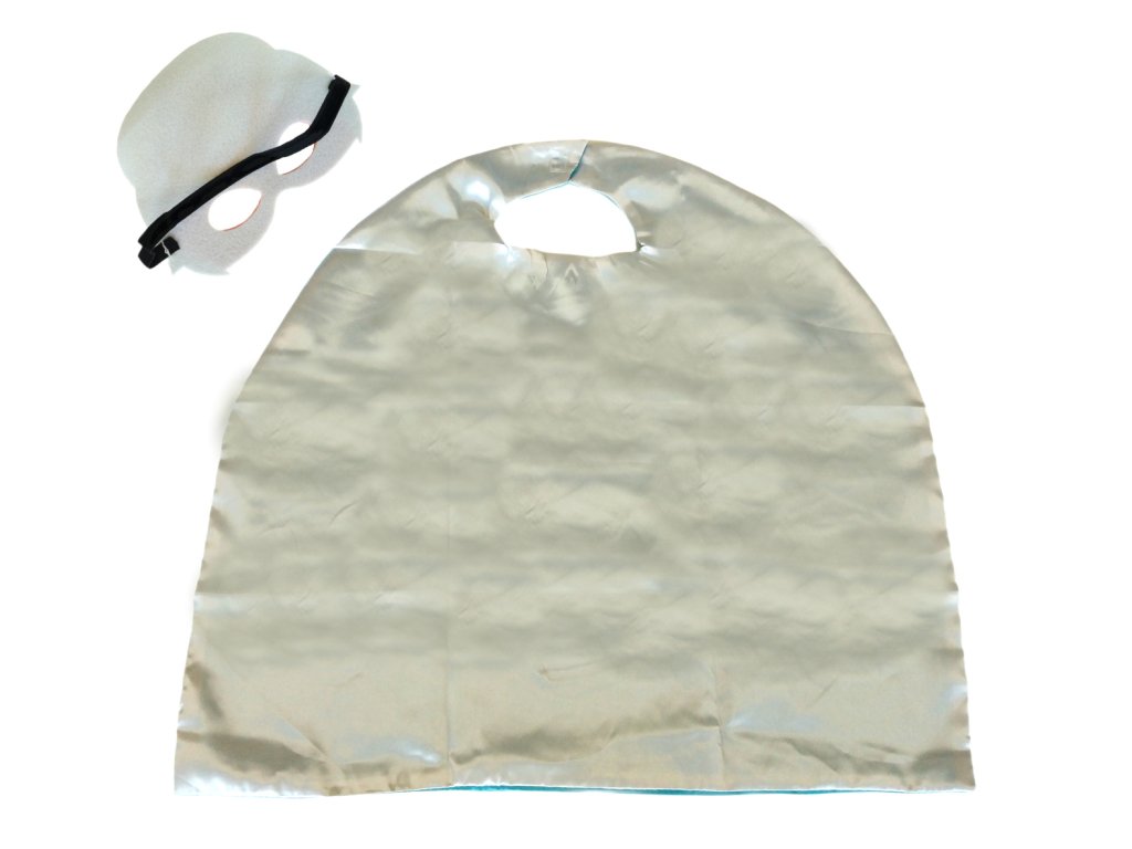 Köpenyfényből és csillogóból készültpoliészter, ami puha, légáteresztő és kényelmes viselet. Tépőzárral rögzíthető a nyak mögött, így könnyen fel- és levehető.MaszkFilcből készült, és rugalmas gumiszalaggal rendelkezik, amely jól tart anélkül, hogy kellemetlen nyomást gyakorolna.