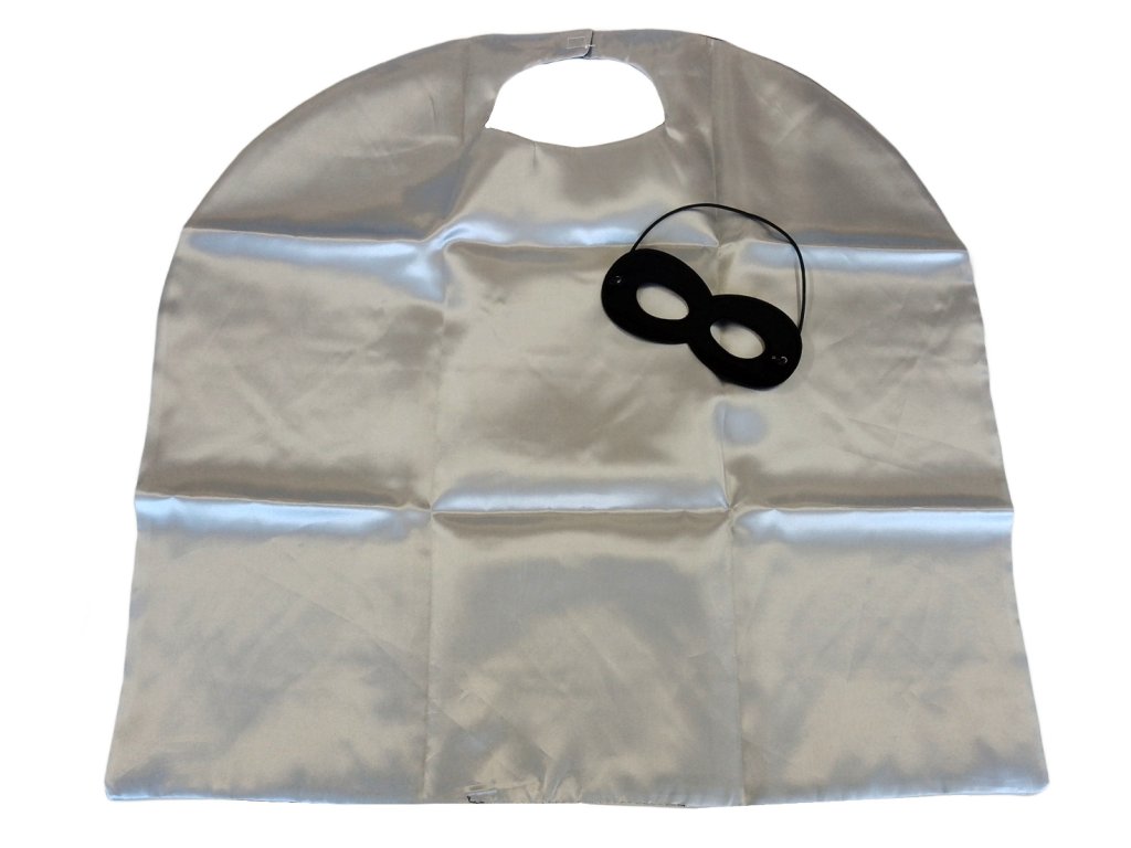 KöpenyKönnyű, sima szatén anyagból készült, kényelmes viselet, és mozgás közben szépen lebeg. Kétoldalas, ezüst belső oldallal és tépőzáras nyakkal, ami megkönnyíti az öltöztetést.MaszkPuha anyagból készült, rugalmas gumiszalaggal, amely jól tartja és nem nyomja.