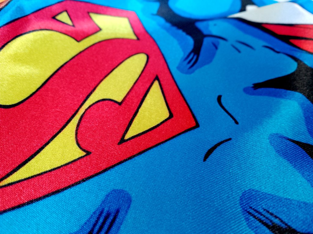 A készlet tartalmaz egy különlegespalásta legendás nyomattalFelsőbbrendű emberklasszikus pózában és kékena maszkaz "S" szimbólummal, így a gyermek könnyen beleélheti magát a szerepbea világ megmentője.