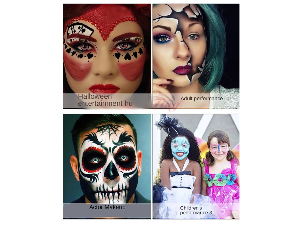 Ez a készlet gyermekek számára is biztonságos, mert a színek nem mérgezőek, hipoallergének és vízzel könnyen lemoshatók. Színek lehetségesek könnyen felvihető ecsettel, szivaccsal vagy ujjal. Alkalmazás után gyorsan száradnak és tartósak. A festés befejezése után színek választhatók egyszerűen mossa le szappannal és vízzel. A készlet ideális összetett minták és egyszerű motívumok készítéséhez, ill a változatos színpalettának köszönhetően végtelen lehetőségeket biztosít saját képzeletének kifejezésére.