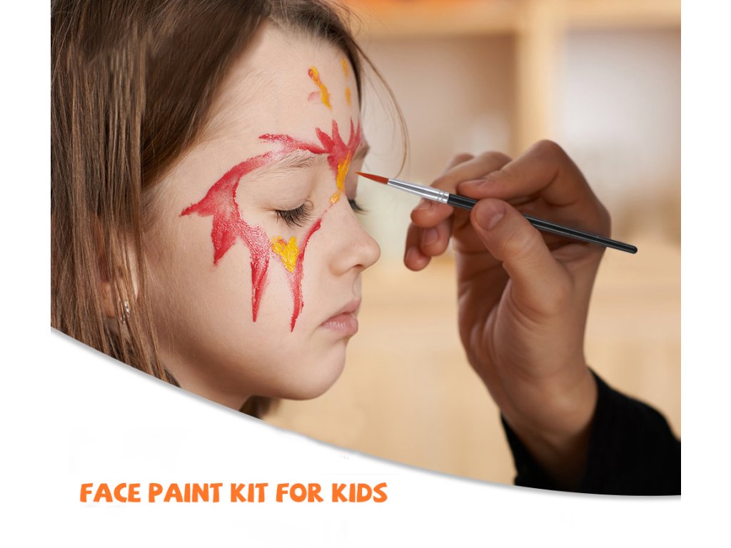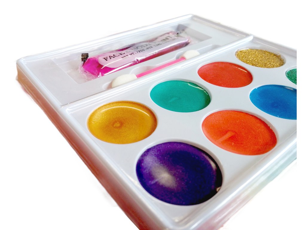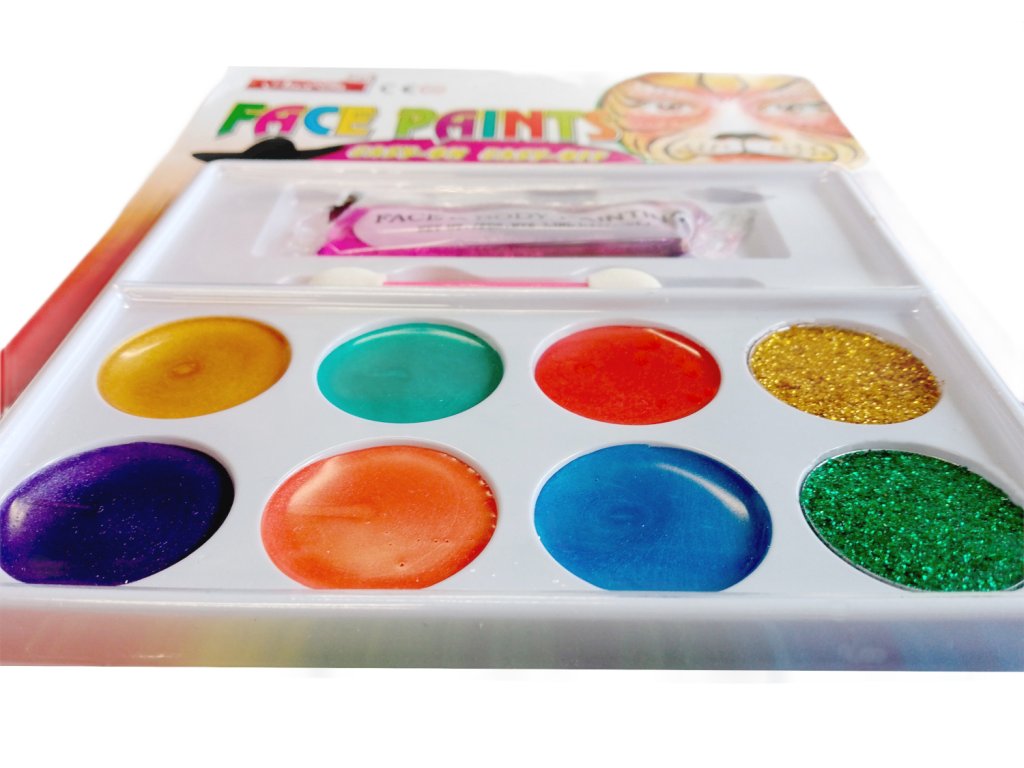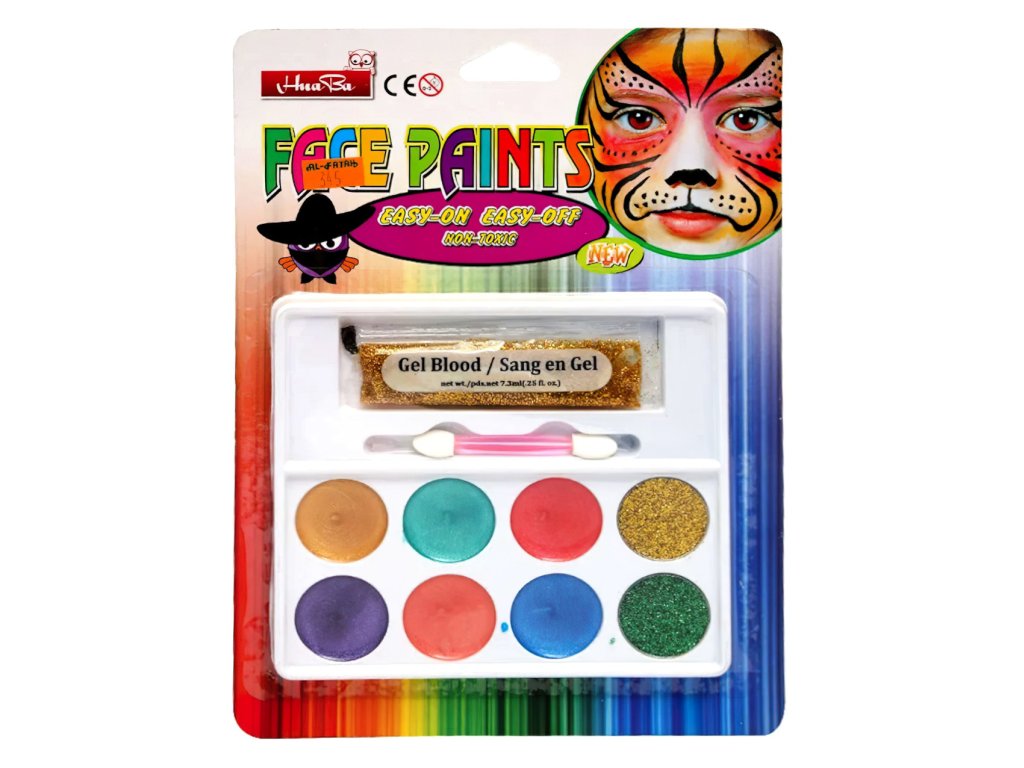 8 színes éscsillogóárnyalatok, amelyekkel könnyedén létrehozhat vidám maszkokat és fantázia motívumokat közvetlenül aarc vagyborjúgyermek.