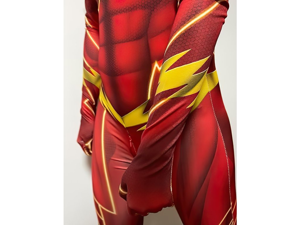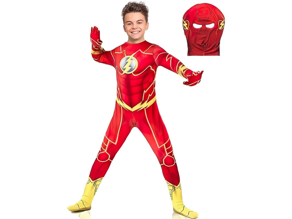 A képregényvilág egyik leggyorsabb szuperhőse által ihletett piros öltöny egyenesen az Igazság Ligája csapatához szállítja kis hősödet. A jelmez merész piros dizájnnal, villámló részletekkel és Flash logóval a mellkasán. Így gyermeke úgy érzi magát, mint Barry Allen – egy olyan férfi, aki képes túllépni az időn és legyőzni a bűnözést, mielőtt bárki pislogni tudna.