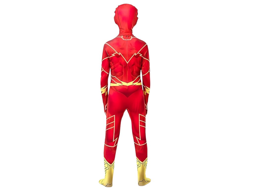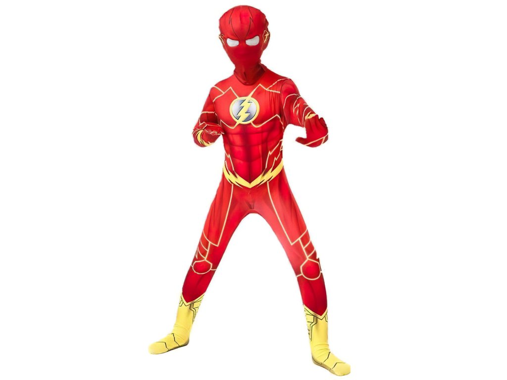 A képregényvilág egyik leggyorsabb szuperhőse által ihletett piros öltöny egyenesen az Igazság Ligája csapatához szállítja kis hősödet. A jelmez merész piros dizájnnal, villámló részletekkel és Flash logóval a mellkasán. Így gyermeke úgy érzi magát, mint Barry Allen – egy olyan férfi, aki képes túllépni az időn és legyőzni a bűnözést, mielőtt bárki pislogni tudna.