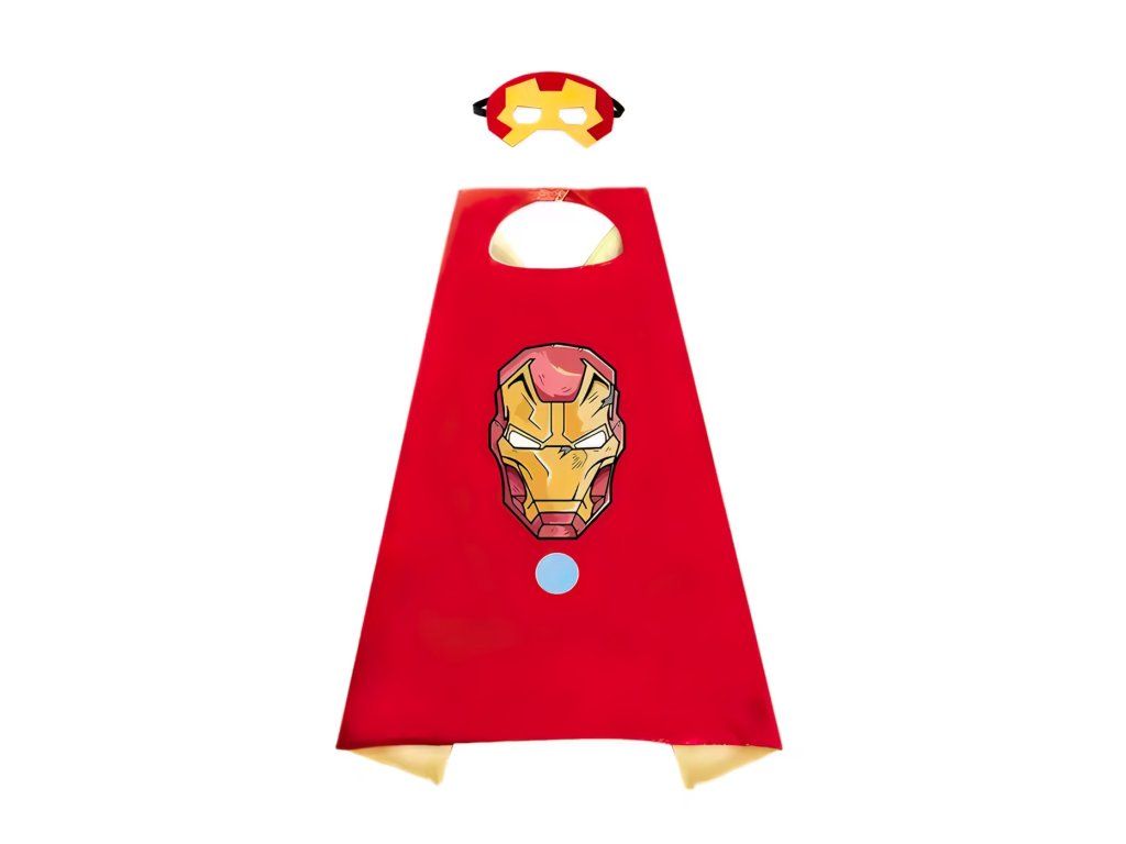 A készlet gazdagon tartalmazvörös köpenynyomtatássalVasember maszkok a világító reaktora mellkason. Ezt egy hangvilla egészíti kifilcmaszksisak stílusTony Stark, amelyet egy rugalmas gumiszalag tart a helyén, és nyomáspontok nélküli kényelmes viseletre tervezték.