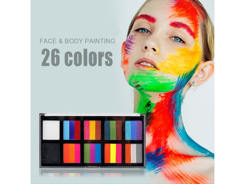 A festékek vízbázisúak., hipoallergén a bőrgyógyászatilag barátságos, alkalmas továbbáérzékeny bababőrKönnyen felvihetők a mellékelt ecsettel, és egyszerűen lemoshatók vízzel és enyhe szappannal.