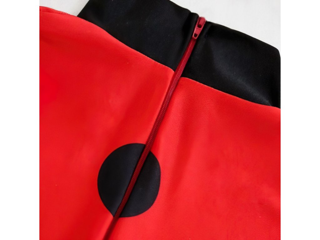 Köszönömminőségi feldolgozás és kényelmes anyagból a gyermeked ebben a jelmezben leszjól néz ki és jól érzi magát. Ez a jelmez tartalmazza piros és fekete overál jellemzővel fekete pontok. Az overál kényelmes háttámlával rendelkezik cipzáros záródás. VAL VELmaszk és kézitáska utánzat pánttal, amelyek a jelmez részét képezik, lesznek tökéletes benyomás. A jelmez kiváló ajándék az állatmotívumok és díszes jelmezek szerelmeseinek, akik átmenetileg tetőtől talpig szeretnék átalakítani megjelenésüket.