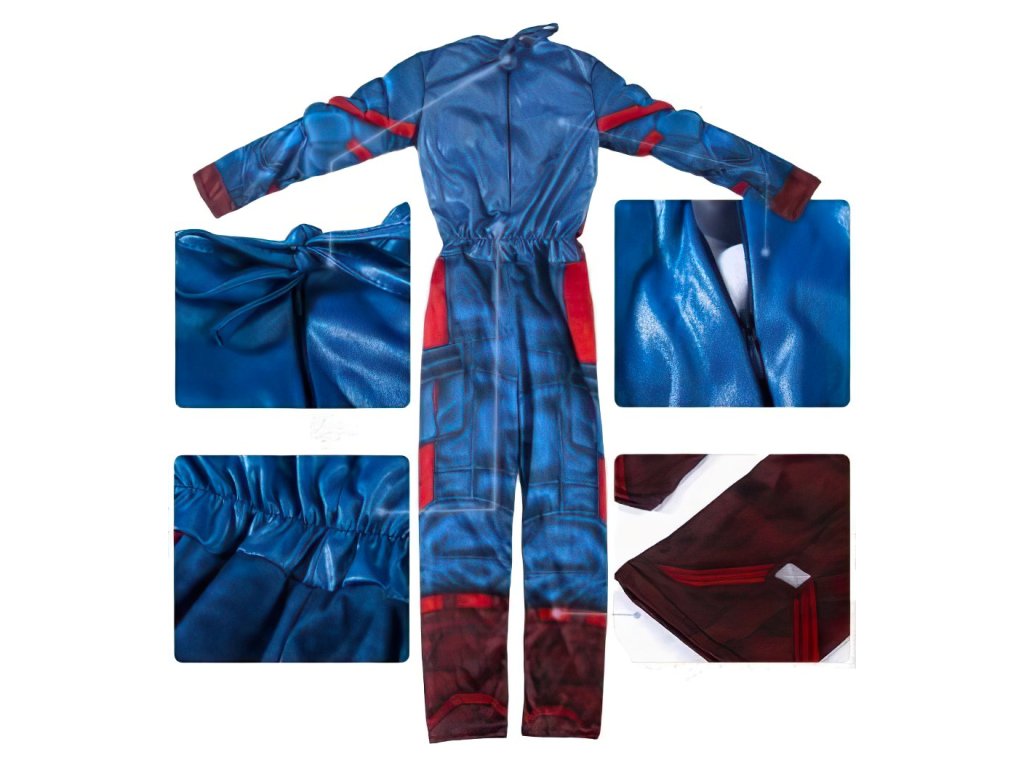 Köszminőségi kidolgozás és kényelmes elasztikus anyag a gyermeked ebben a jelmezben leszjól néz ki és jól érzi magát. Könnyű anyagból készült, egyrészes, hosszú nadrággal és ujjú, hátul cipzárral és zsinórral rögzíthető jumpsuit formájú jelmez a híres figura dekoratív nyomataival. Ez egy jelmez az alkatrész mellkasában megerősített és varrott, hogy kiemelje a szuperhős izmait és erejét.