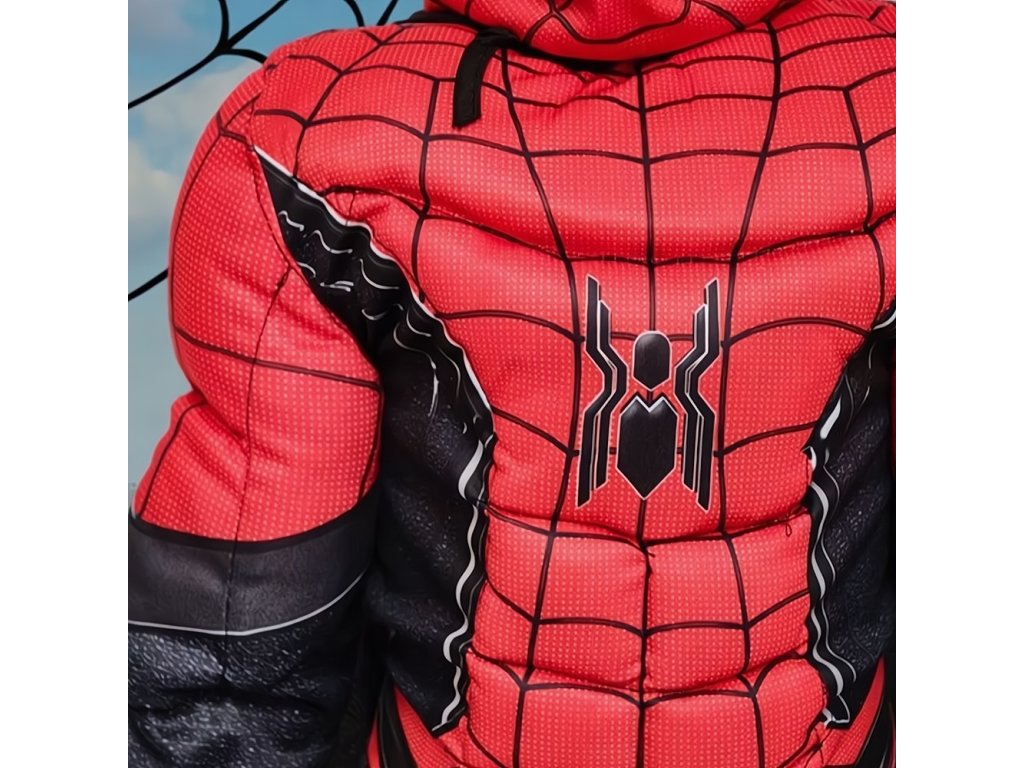 A jelmez kiváló minőségű és rugalmas kezeslábasból áll, amely kényelmesen ül a testen és lehetővé teszi a szabad mozgást. A pókhálóval kombinált piros és sötétkék színeket olyan valósághű részletek egészítik ki, mint a pók embléma a mellkason és a megerősített izomhatás, amely autentikus megjelenést kölcsönöz a jelmeznek. A csomag tartalmaz egy maszkot is, amely az egész fejet fedi, és átlátszó szemlyukakkal rendelkezik, így gyermeke tökéletesen megvédi személyazonosságát - akárcsak az igazi Pókember.