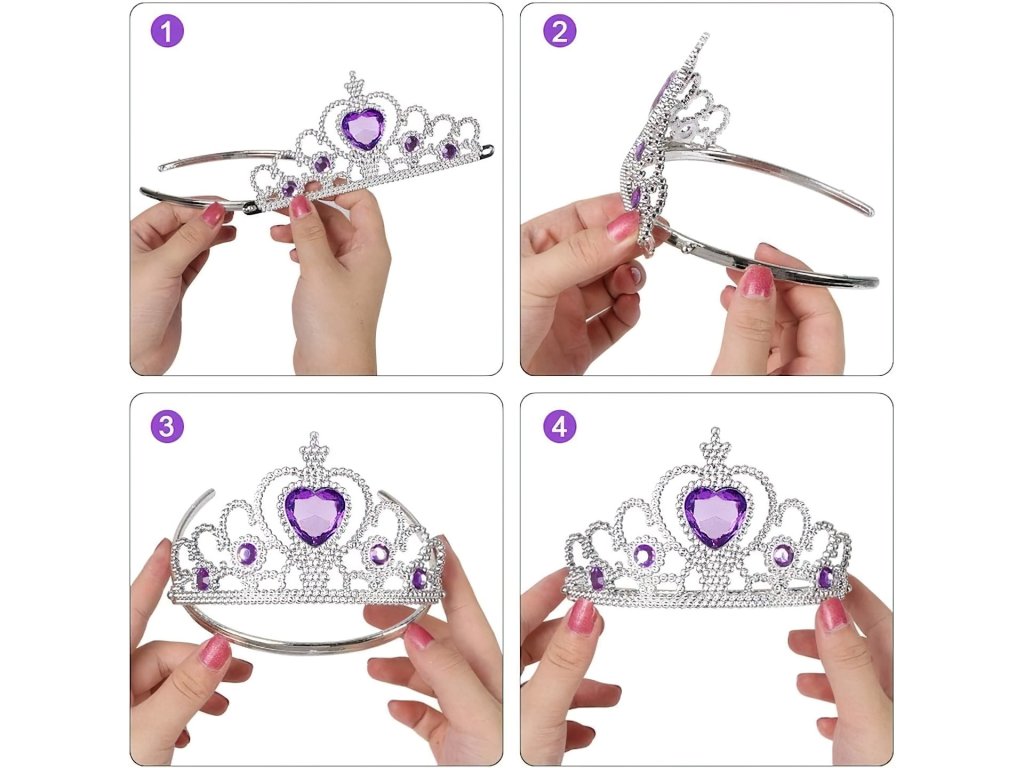 Elegánskoronaés hangolásjogarLila, szív alakú kövekkel díszítettek, amelyek finom csillogást kölcsönöznek az összképnek.királyilehelet.KoronaKönnyű és kényelmes viselet, műanyagból készült, finom részletekkel, amelyek varázslatos hangulatot idéznek.királyságokRugalmas kialakításának köszönhetően jól tartja a fejét, így ideális gyermekjátékokhoz és ünnepi pillanatokhoz.
