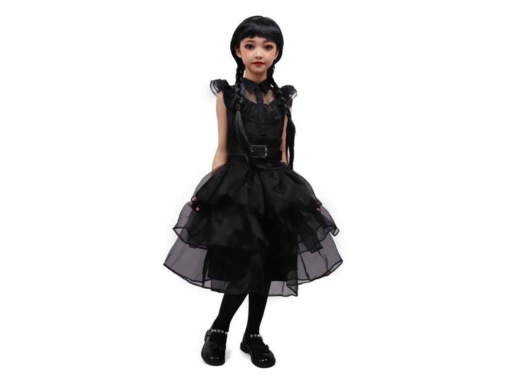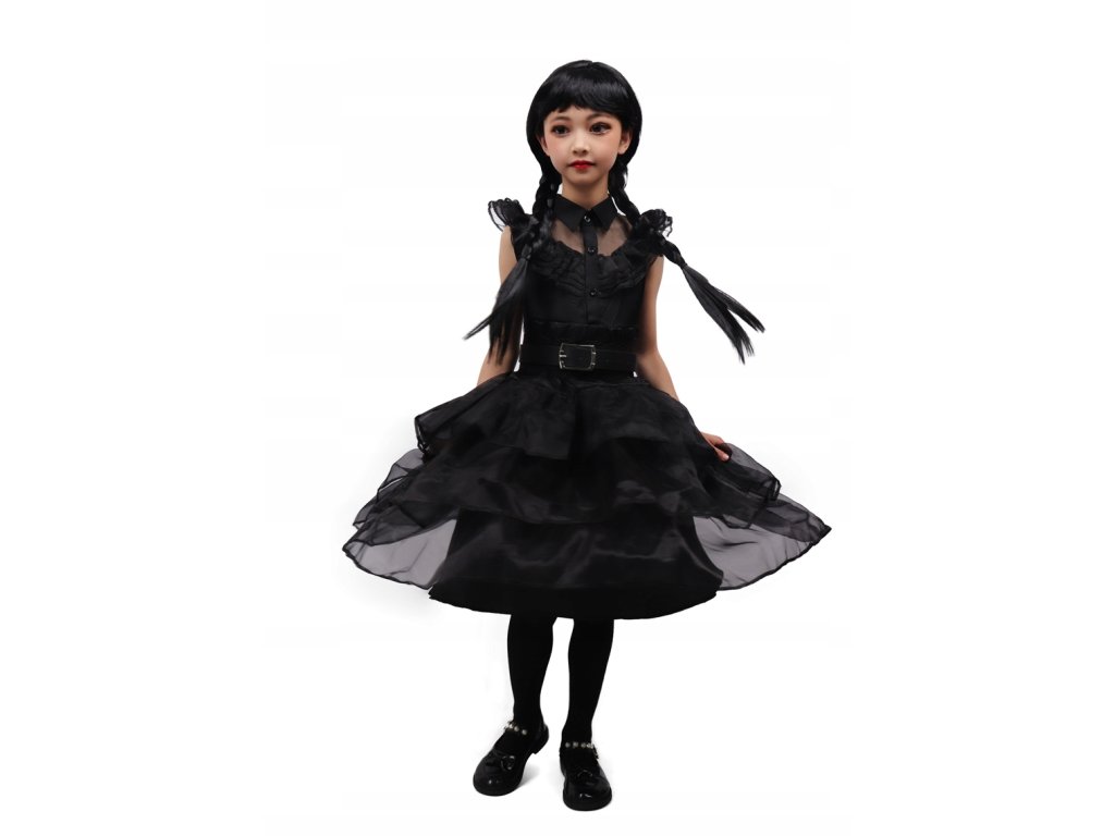 Ez a jelmez kiváló választásgyerekkarneválok, Halloween, vagy bármiegy másik esemény. Köszminőségi kidolgozás és kényelmes anyagok a gyermeked ebben a jelmezben leszjól néz ki és jól érzi magát. Az eredeti átalakuláshoz az egyika leghíresebb szereplőkkultuszbólAdams család – szerda, biztosan sok dicséretben lesz része a gyereknek.