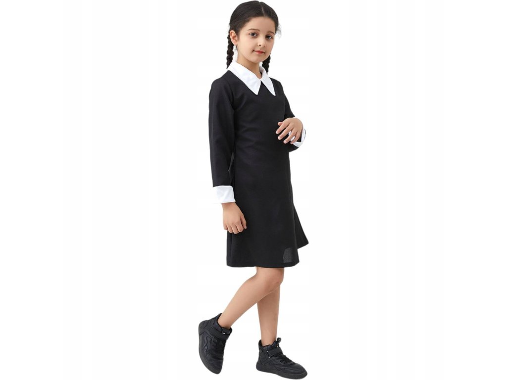 Ez a jelmez kiváló választásgyerekkarneválok, Halloween, vagy bármiegy másik esemény. A jelmez egyszerű, könnyű, klasszikusfekete-fehér dizájn gallérral. Köszminőségi kidolgozás és kényelmes anyagok a gyermeked ebben a jelmezben leszjól néz ki és jól érzi magát. Az eredeti átalakuláshoz az egyika leghíresebb szereplőkkultuszbólAdams család – szerda, biztosan sok dicséretben lesz része a gyereknek.