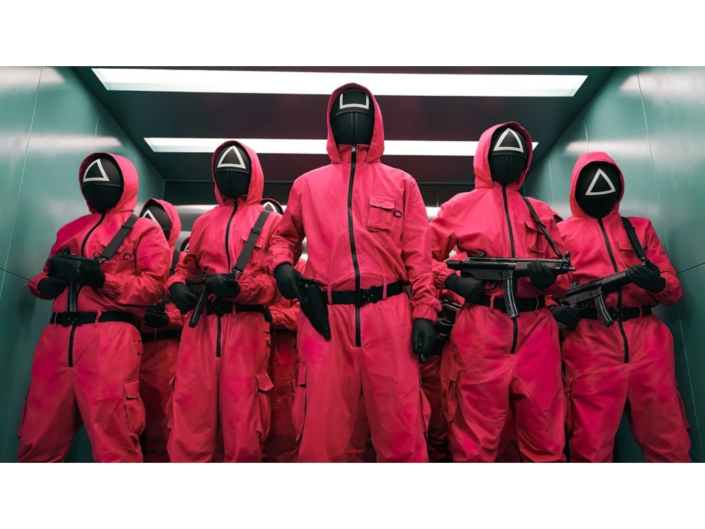 Őrző maszk sorozatból Kalmár játék a versenyt felügyelő karakterek ikonikus kiegészítőjének hiteles mása. Fekete perforált maszk felület lehetővé teszi viselőjének, hogy könnyen lásson, miközben fehér háromszög a homlokán közötti hierarchikus szintek egyikére utal gárdisták. Ez a titokzatos dizájn azonnal felidézi a népszerű sorozat feszültségét és hangulatát.