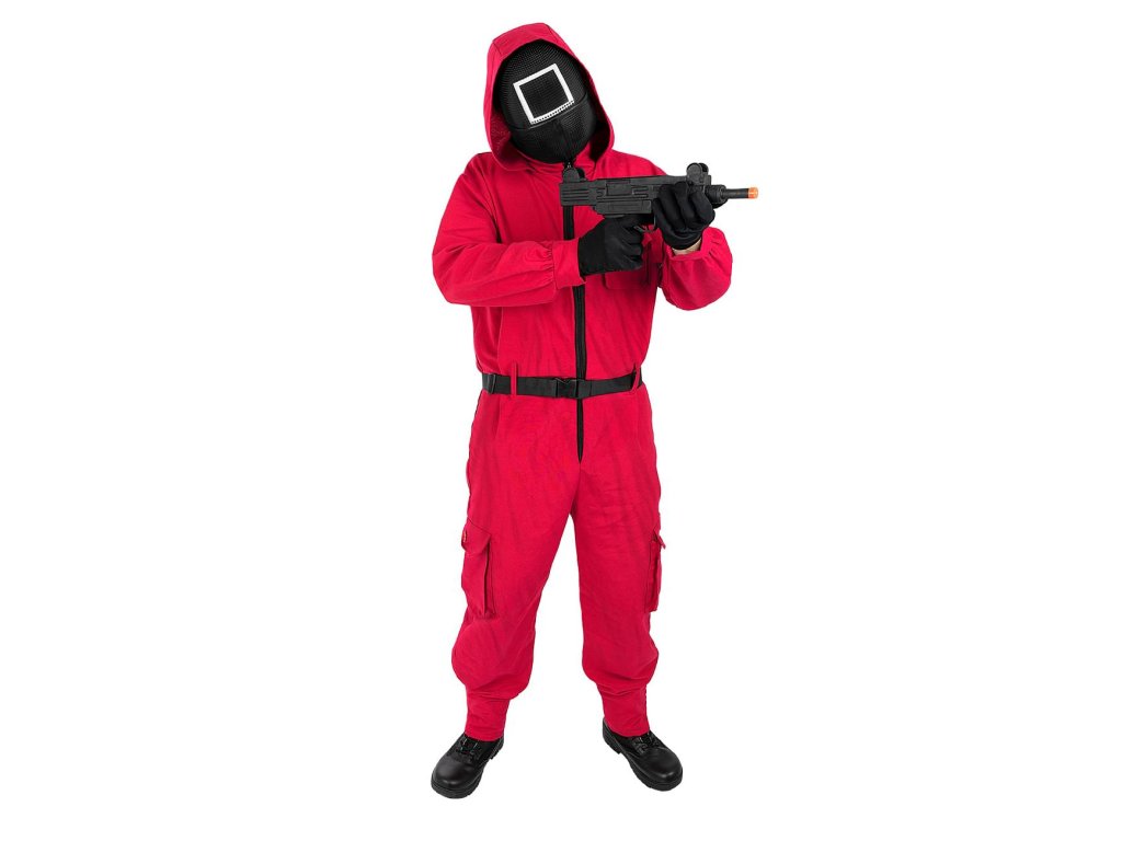 Merülj el a feszültséggel és stratégiával teli világban jelmezben "felügyelő". Ezt a jelmezt egy ikonikus karakter ihlette felügyelők, akik egy halálos, csavarokkal és váratlan helyzetekkel teli játékot felügyelnek a sorozatban. Megkülönböztető piros overál kapucnival és fekete maszk geometrikus szimbólummal Azonnal magára vonzza a figyelmet, és titokzatos megjelenést kölcsönöz, amely tiszteletet és kíváncsiságot ébreszt bármilyen tematikus bulin, karneválon vagy cosplay eseményen.