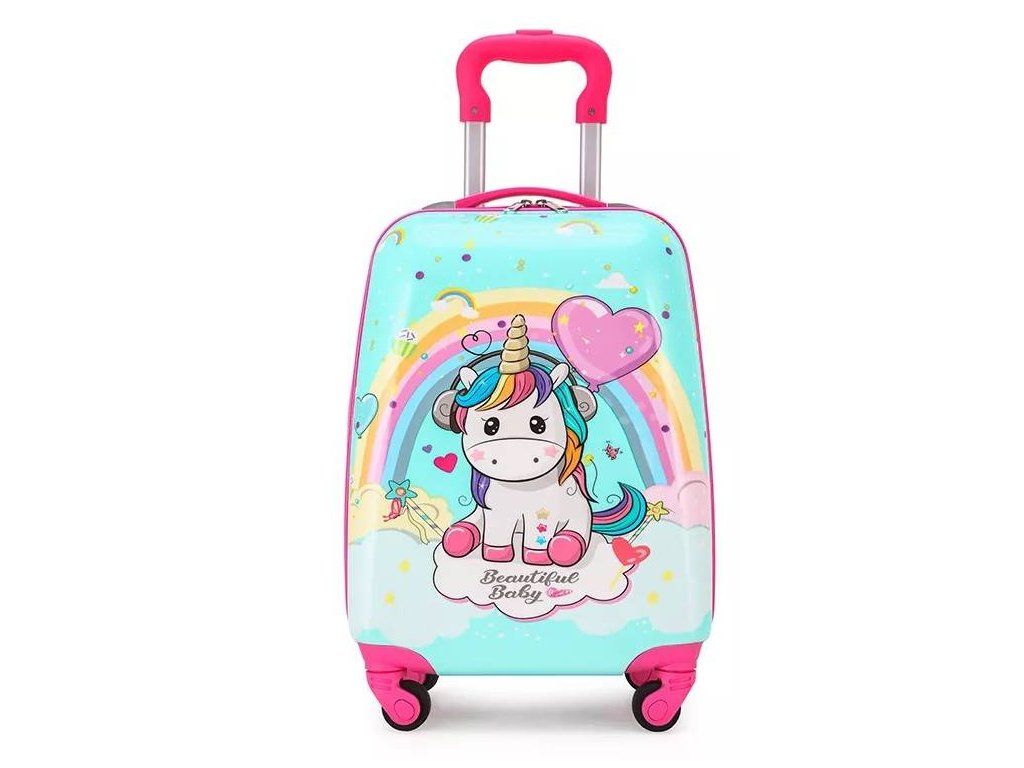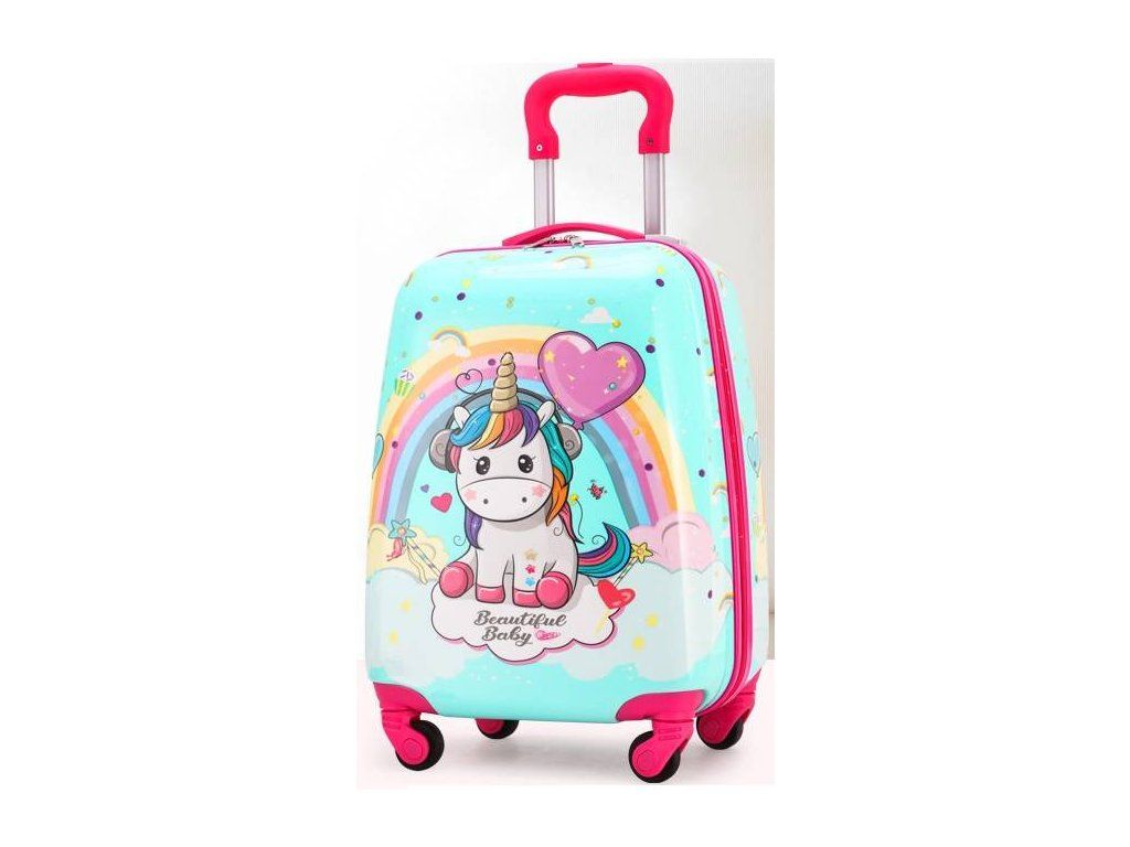 Gyermek utazóbőrönd egyszarvú motívummal tökéletes ajándék kis utazóknak, akik szeretik a mágiát és a fantáziát.
