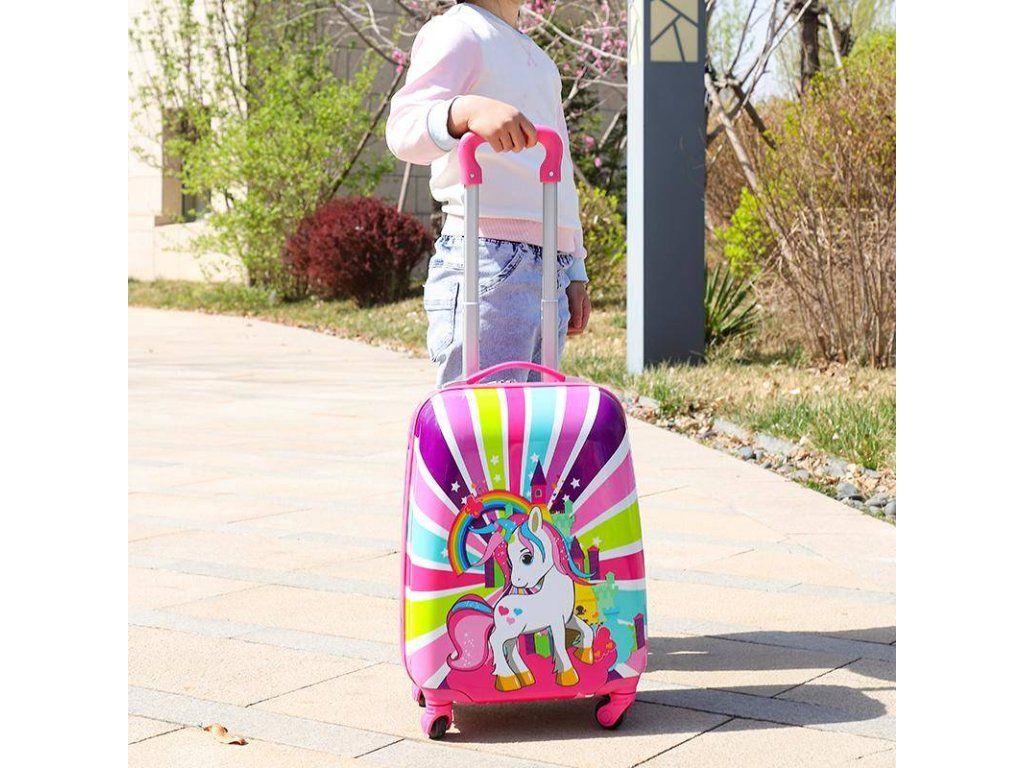 Gyermek utazóbőrönd bájos unikornis motívummal ideális társ a szerelmes kis utazók számára varázslatos történet.