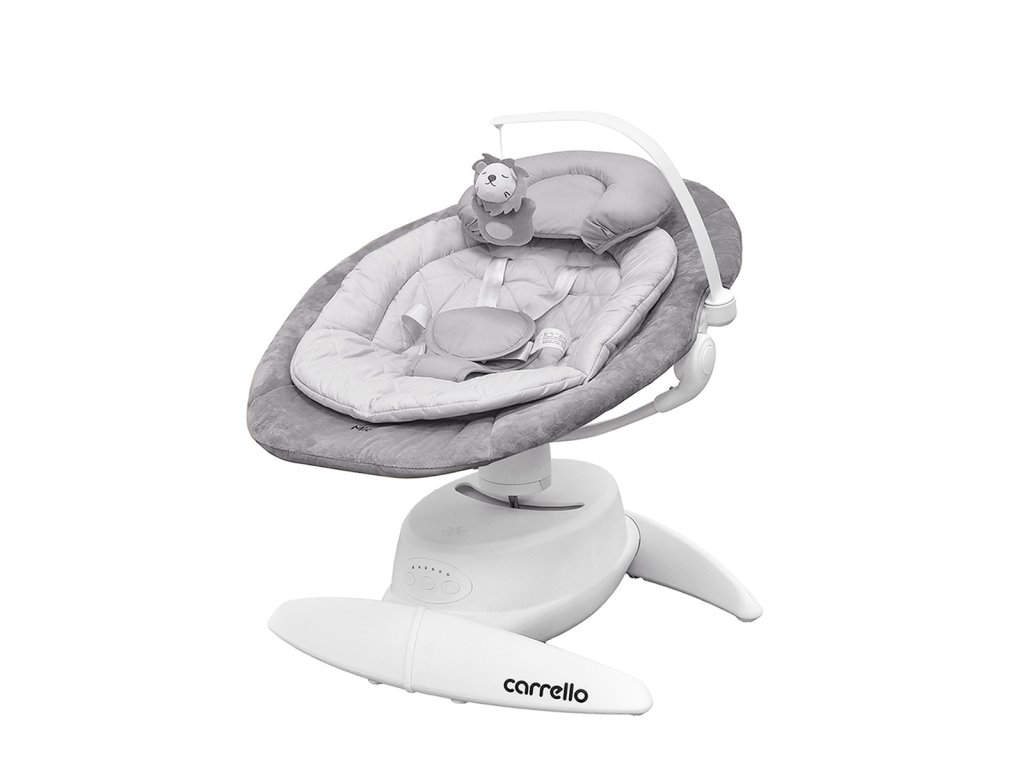 Carrello Mio csecsemőnyugtató központ. Modern megoldás a pihenésre és a játékra születéstől 6 hónapos korig. A Mio születéstől 9 kg-os gyermekek számára készült. A Mio mechanikus vezérlőpanellel és a készülék házán található karokkal vezérelhető. Három ringató üzemmód (6 mozgásvariáció), öt hintázási sebességszint, zenei modul (12 beépített dallam), hangerőszabályzó, fényjelző. A készlet tartalmaz egy hálózati adaptert. BEMENET: 100–240V 50/60Hz 0,2A MAX KIMENŐ: 5–6V 0,8A Elemmel is használható (4 db AA elem szükséges). Az ülés háttámlája két pozícióba állítható – fekvő és félig fekvő. Az ötpontos biztonsági öv anatómiai betéttel biztosítja a baba kényelmét és biztonságát. Puha matrac és párna tartozék. Az ülés 360°-ban elforgatható balra és jobbra, így megváltoztathatja a ringatás irányát és fenntarthatja a szemkontaktust a gyermekkel.Kiegészítő paraméterek