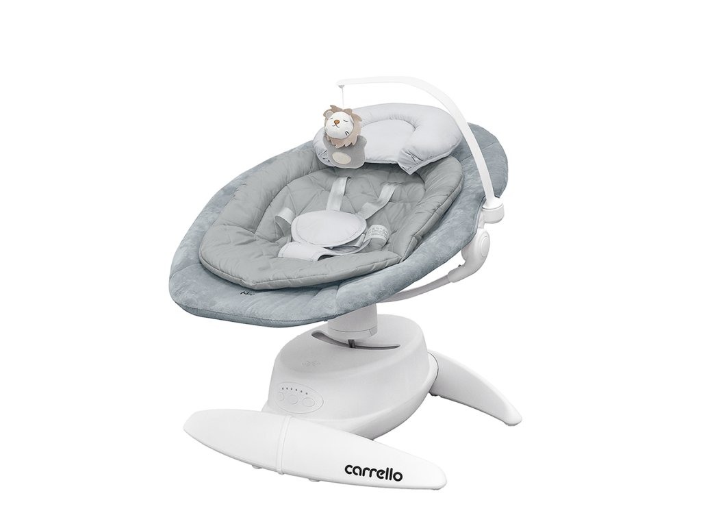 Carrello Mio csecsemőnyugtató központ. Modern megoldás a pihenésre és a játékra születéstől 6 hónapos korig. A Mio születéstől 9 kg-os gyermekek számára készült. A Mio mechanikus vezérlőpanellel és a készülék házán található karokkal vezérelhető. Három ringató üzemmód (6 mozgásvariáció), öt hintázási sebességszint, zenei modul (12 beépített dallam), hangerőszabályzó, fényjelző. A készlet tartalmaz egy hálózati adaptert. BEMENET: 100–240V 50/60Hz 0,2A MAX KIMENŐ: 5–6V 0,8A Elemmel is használható (4 db AA elem szükséges). Az ülés háttámlája két pozícióba állítható – fekvő és félig fekvő. Az ötpontos biztonsági öv anatómiai betéttel biztosítja a baba kényelmét és biztonságát. Puha matrac és párna tartozék. Az ülés 360°-ban elforgatható balra és jobbra, így megváltoztathatja a ringatás irányát és fenntarthatja a szemkontaktust a gyermekkel.Kiegészítő paraméterek
