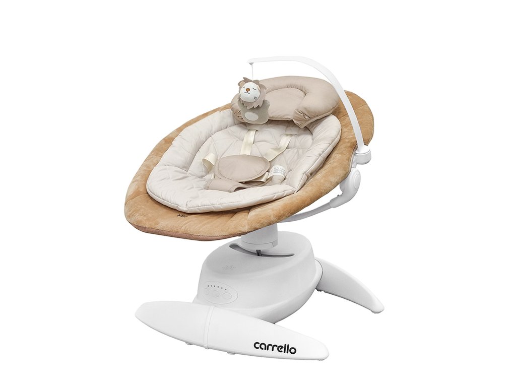 Carrello Mio csecsemőnyugtató központ. Modern megoldás a pihenésre és a játékra születéstől 6 hónapos korig. A Mio születéstől 9 kg-os gyermekek számára készült. A Mio mechanikus vezérlőpanellel és a készülék házán található karokkal vezérelhető. Három ringató üzemmód (6 mozgásvariáció), öt hintázási sebességszint, zenei modul (12 beépített dallam), hangerőszabályzó, fényjelző. A készlet tartalmaz egy hálózati adaptert. BEMENET: 100–240V 50/60Hz 0,2A MAX KIMENŐ: 5–6V 0,8A Elemmel is használható (4 db AA elem szükséges). Az ülés háttámlája két pozícióba állítható – fekvő és félig fekvő. Az ötpontos biztonsági öv anatómiai betéttel biztosítja a baba kényelmét és biztonságát. Puha matrac és párna tartozék. Az ülés 360°-ban elforgatható balra és jobbra, így megváltoztathatja a ringatás irányát és fenntarthatja a szemkontaktust a gyermekkel.Kiegészítő paraméterek