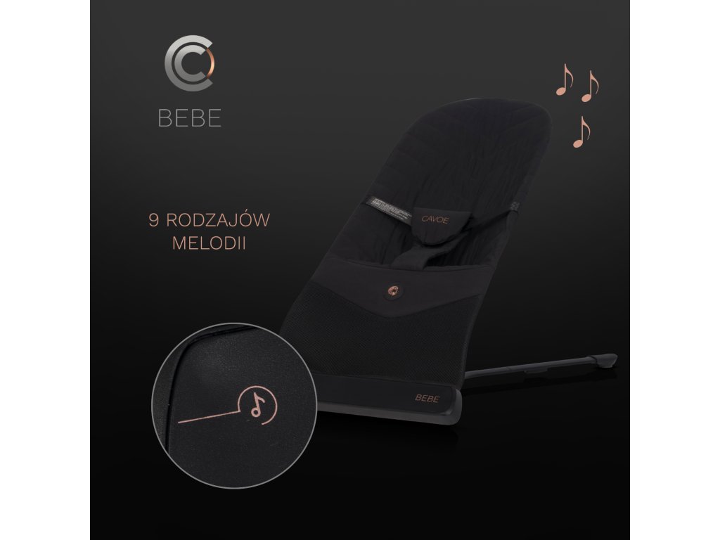 CAVOE BABY több mint egy átlagos babaágy. Egy exkluzív kollekció része. CAVOE HOME, amely eleganciát és funkcionalitást visz otthonába. Mély fekete színével és rozéarany fém kiegészítőivel a nyugágy stílusos kiegészítője lesz bármely modern enteriőrnek, legyen az nappali, étkező vagy hálószoba.