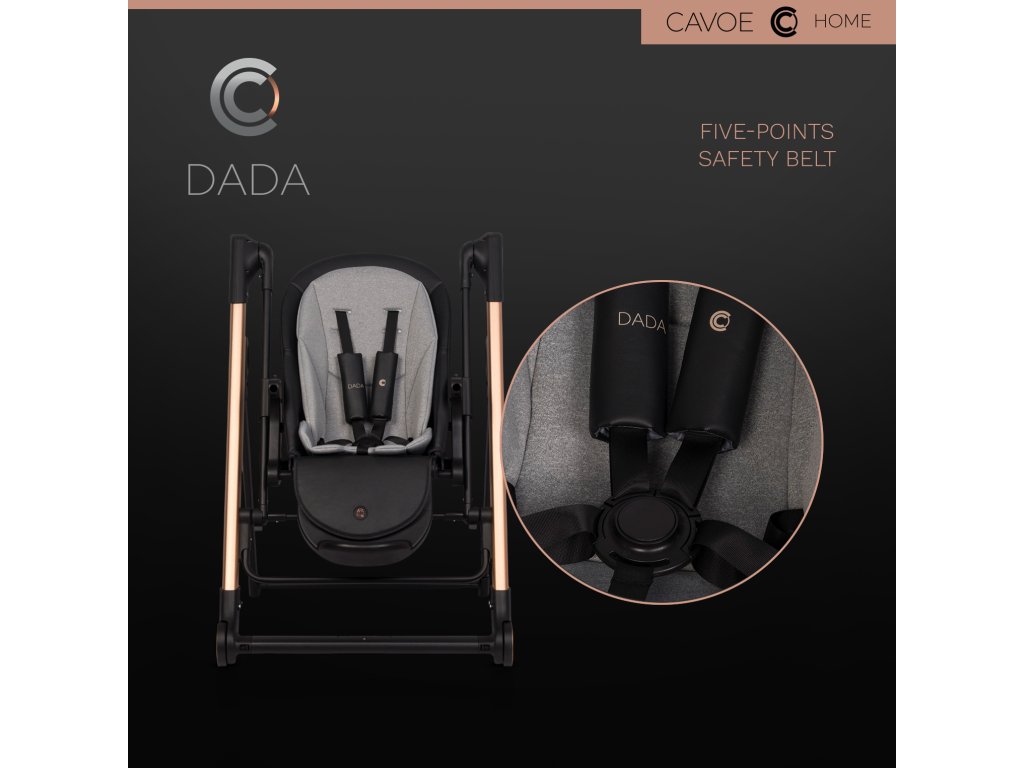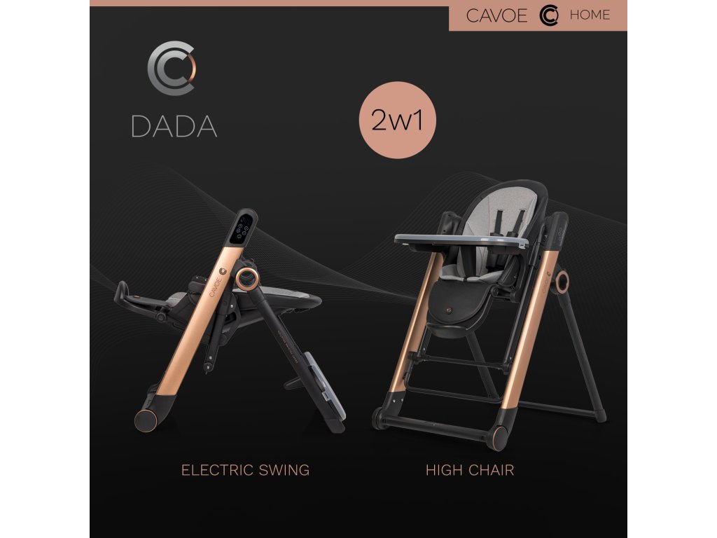 A Cavoe Dada 2 az 1-ben étkezőszék ideális megoldás a modern szülők számára, akik praktikus és stílusos kiegészítőket keresnek gyermekük számára. A CAVOE HOME kollekció ezen terméke ötvözi az elektromos hinta funkcionalitását és az étkezőszék kényelmét, így minden otthonban multifunkcionális felhasználást kínál.
