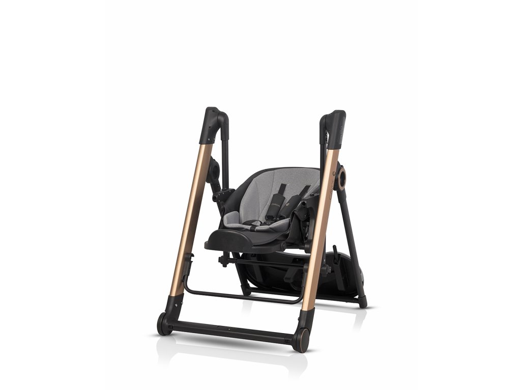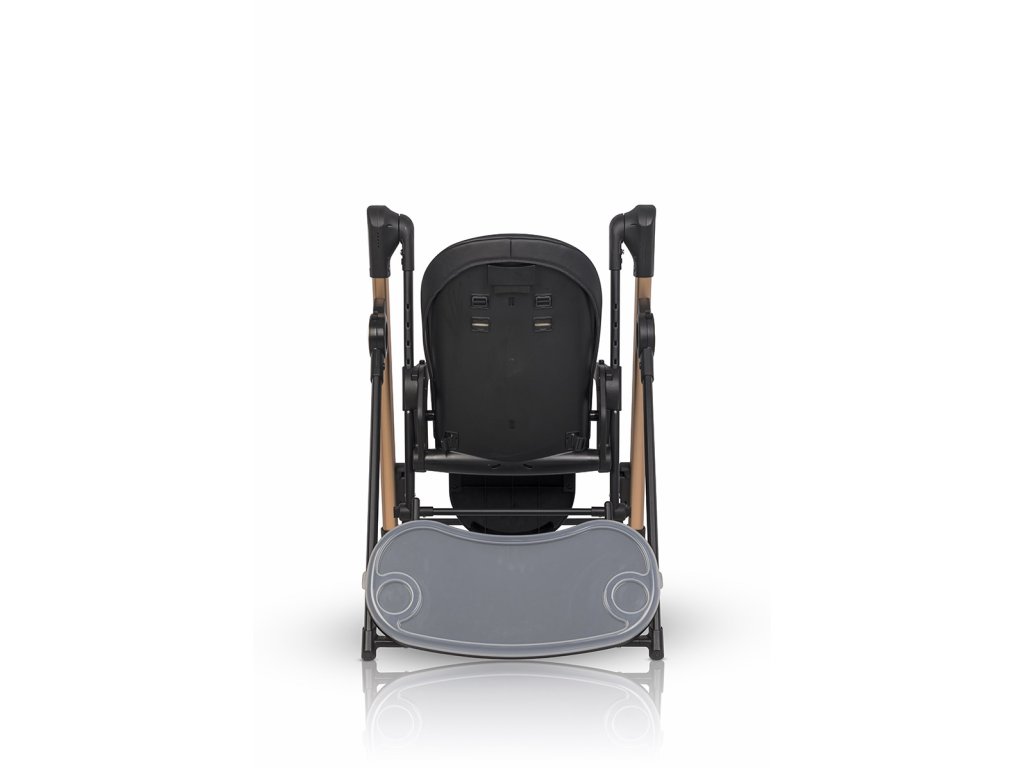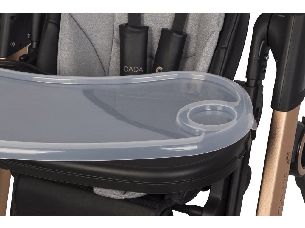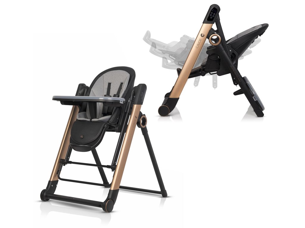 - Étkezőszék: Állítható háttámlával, kihúzható üléssel, 6 magassági szinttel, dupla tálcával és nagy, fékezhető kerekekkel rendelkezik a könnyű mozgatás érdekében.