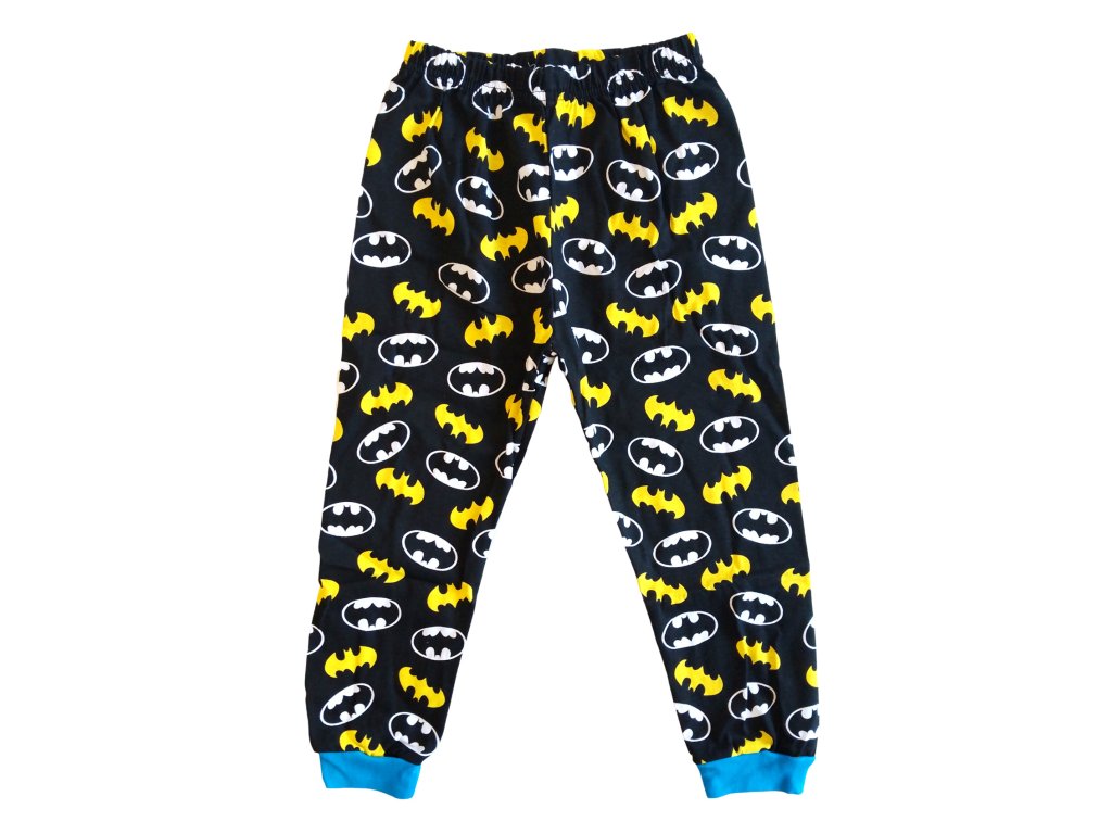 A nadrág fekete színben készült, a denevér emblémával, tipikus sárga és fekete színekben. Az elasztikus derékpántnak köszönhetően tökéletesen illeszkednek és nem szűkülnek, így biztosítva a kényelmet viselés közben. A nadrágot kék mandzsetta zárja, amelyek illeszkednek a póló részleteihez, és megakadályozzák, hogy alvás közben feltekeredjenek. Anyaga kellemes tapintású, és elegendő légáteresztőt biztosít a nyugodt éjszakai pihenéshez.
