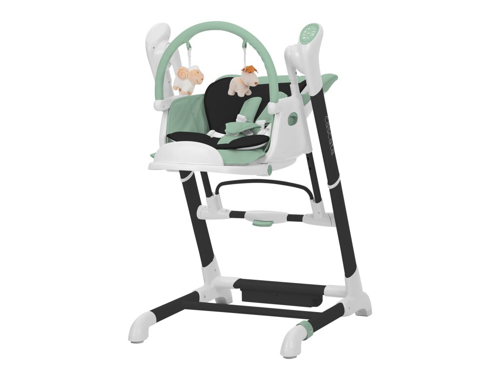 A Cascata egy többfunkciós szék, amely egyesíti a nyugágy, a hintaló és az etetőszék funkcióit. A Cascata szék születéstől 3 éves korig gyermekek számára készült. Magasságállítással, háttámla állítással, lábtámasz állítással van felszerelve, így a szék együtt nőhet" a gyerekkel. A csendes lengőmechanizmus lehetővé teszi a baba ringatását a székben, hasonlóan a hagyományos elektronikus ringatókhoz. A zenei modul kellemes dallamokkal a baba fejlődéséről pedig egy ív gondoskodik A szülők kényelmét szolgálja a telefonról történő távirányító is, amely automatikusan aktiválja a lassút ringató üzemmód közepes hangerős zenével A biztonságról a stabil szerkezet gumírozott lábakkal, megbízható ötpontos hevederekkel, valamint az asztalhoz csúszásgátlóval gondoskodik és aktiválja a ringatást, amint valami megzavarja a baba egészséges alvását kompakt a könnyű tárolás érdekében. A zenei kíséret lehetőségek között szerepel a madárdal és a vízzúgás, a megnyugtató gyermekdallamok, valamint a külső USB-meghajtó csatlakoztatásának lehetősége a zenéhez. A Cascata vezérlése telefonos alkalmazáson vagy vezérlőpulton keresztül történik. Az alkalmazás telepítéséhez szükséges QR-kód az utasításokban található. Készlet: Betétes ív játékokkal Műszaki adatok: Magasságállítás: Igen, 6 pozíció Háttámla állítás: 4 pozíció Lábtámasz: Igen Tálca: Igen, kivehető Tálca: Igen, pohártartóval Játékkosár: Nem Biztonsági öv: 5 pontos Kerekek: Nincs erő : Hálózatról / 1,5V-os akkumulátorról Méretek: Kihajtva méret (HxSzxM): 105x82x58 cm Összecsukott méret (MaxSzxMé): 125x25x58 cm"Kiegészítő paraméterek