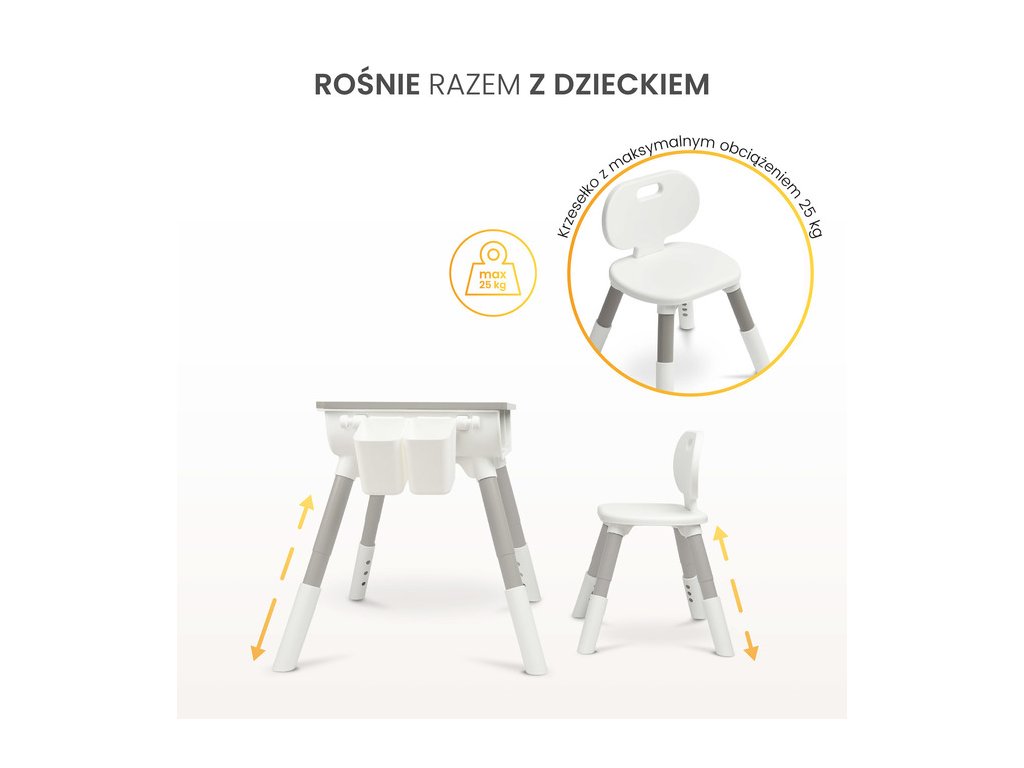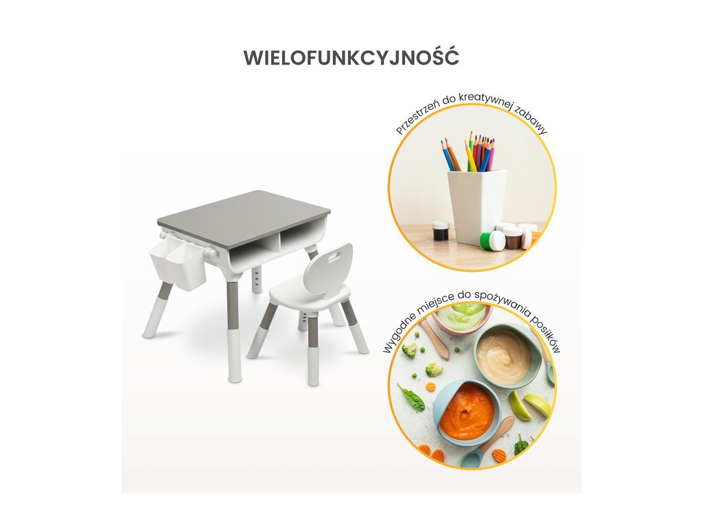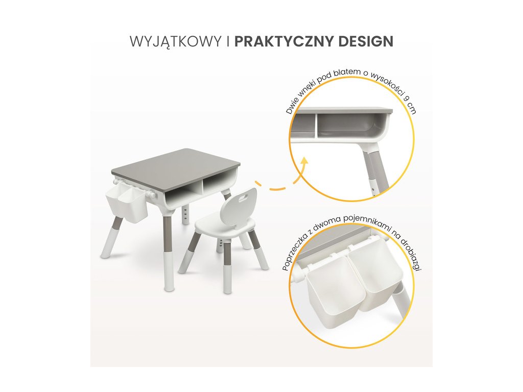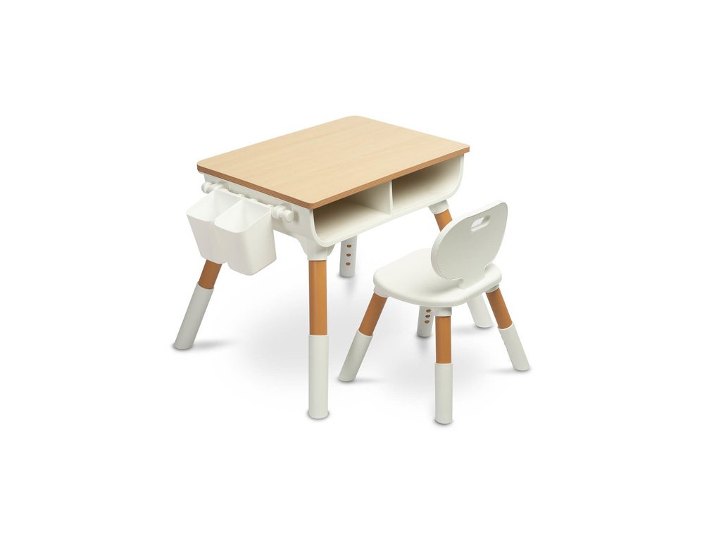 - Állítható magasság: A funkcionális magasságállításnak köszönhetően az asztal és a szék könnyen alkalmazkodik a gyermek növekedéséhez, így ideális megoldást nyújt évekre előre.