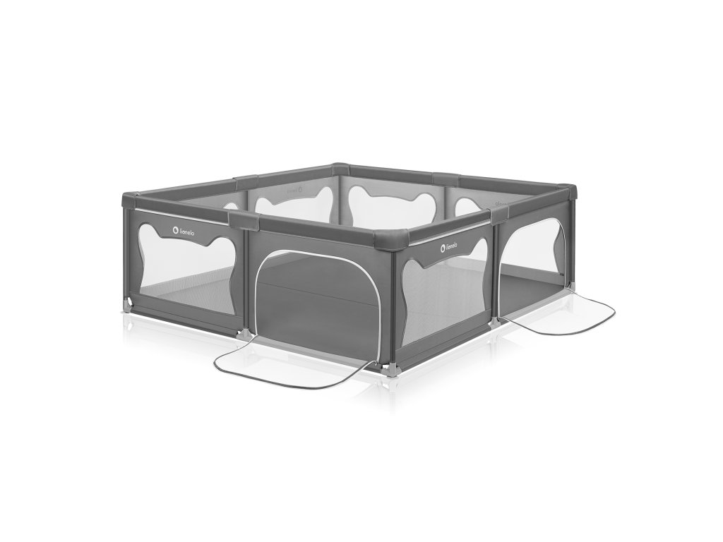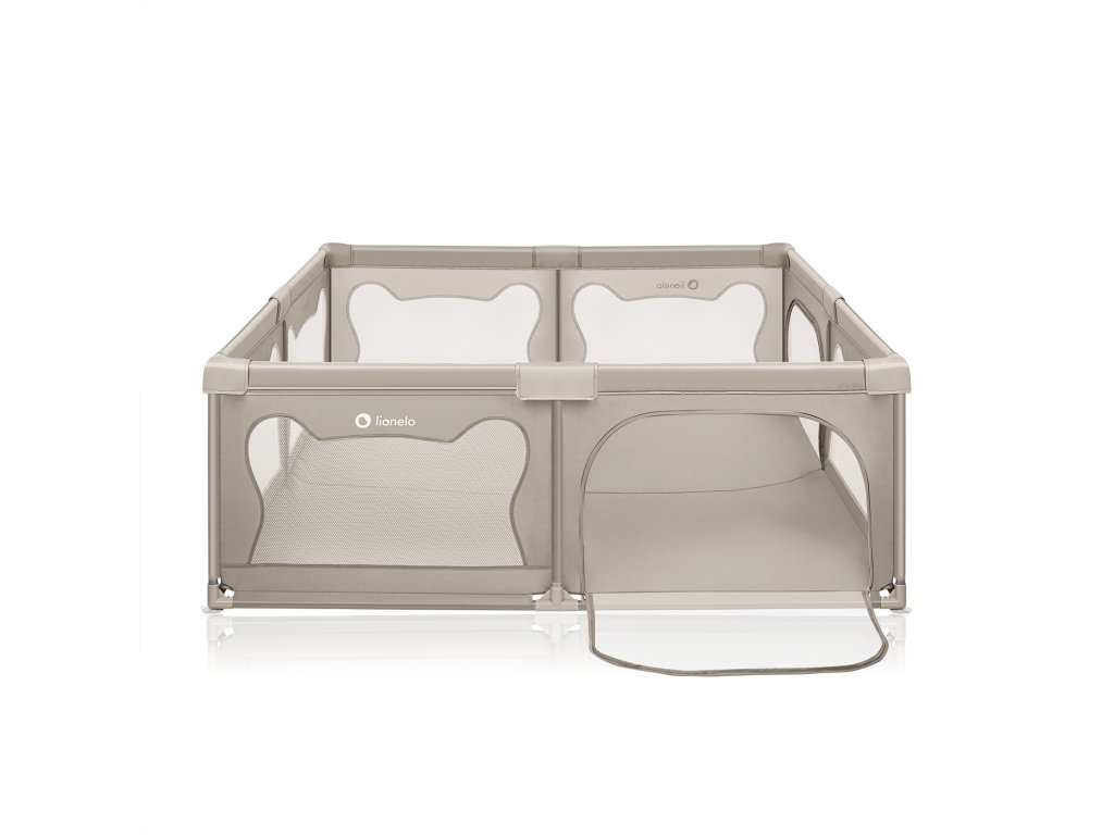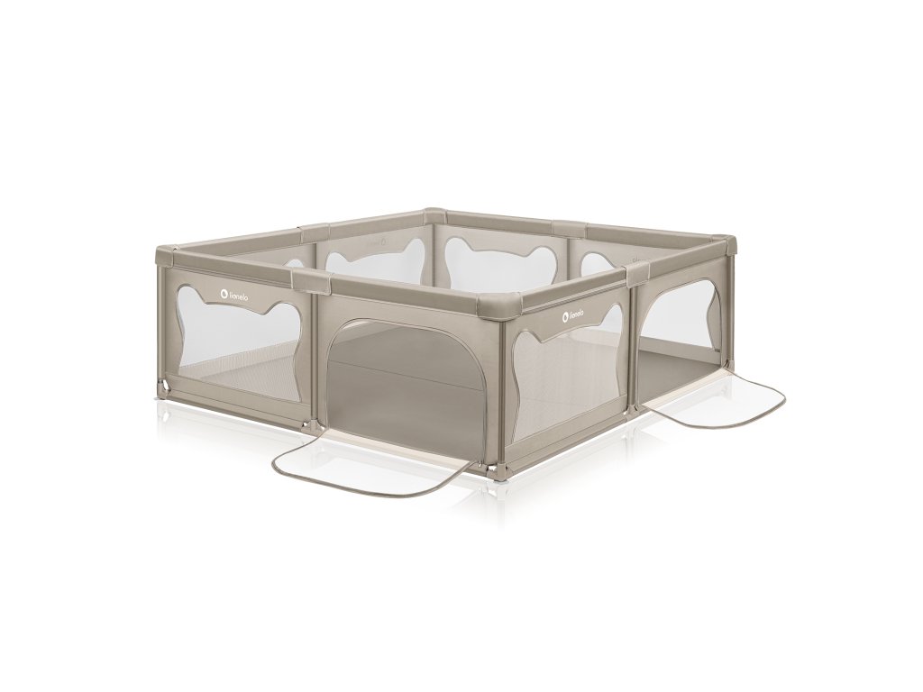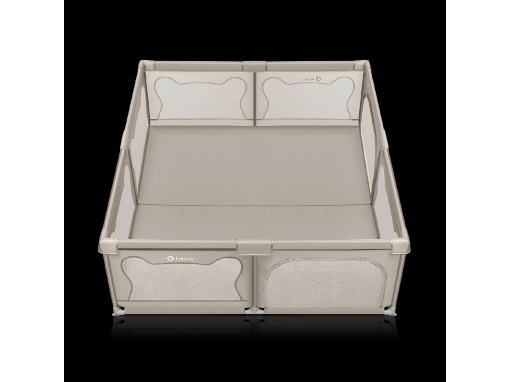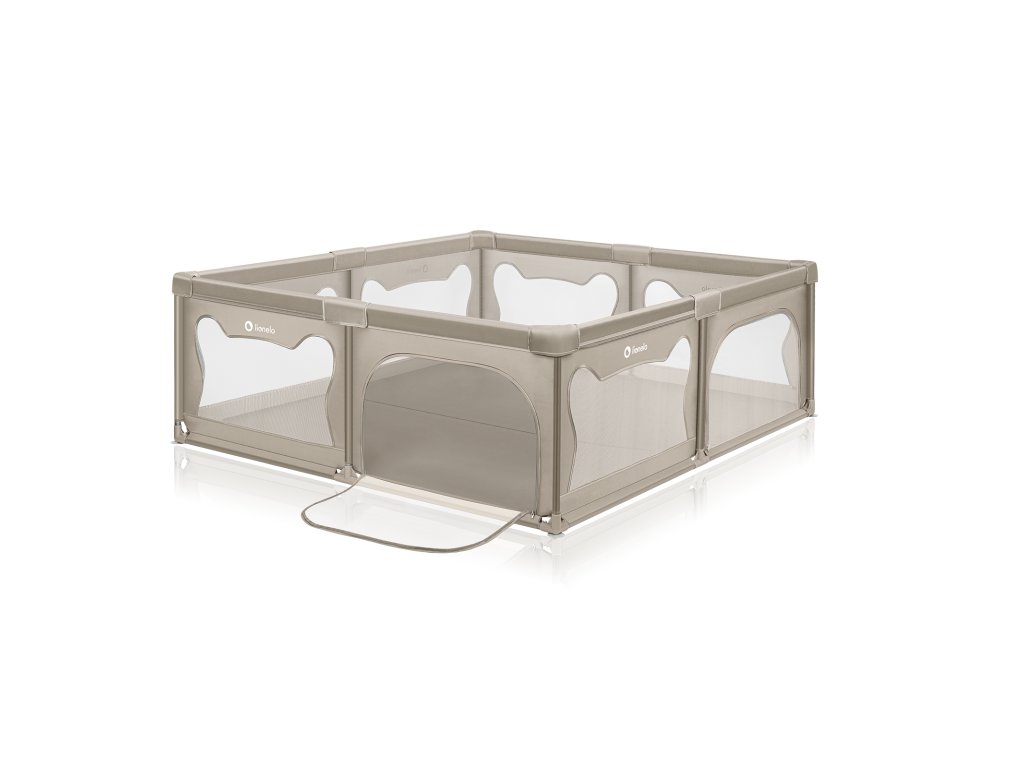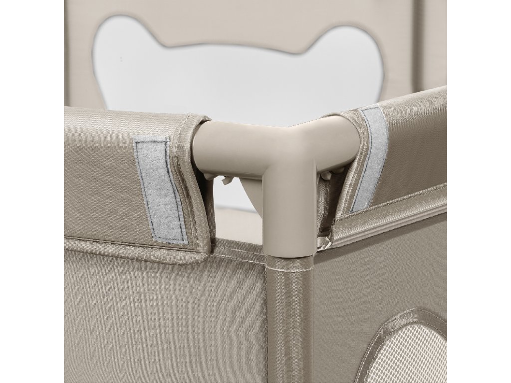 A járóka magas oldalai hálóból készültek, ami nem csak a levegő keringését, hanem a jó láthatóságot is garantálja, így a szülő figyelemmel kísérheti, mi történik a gyerekkel. A puha oldalfalak minimalizálják az esetleges ütközések kockázatát, a medvefül mintázat pedig arra ösztönzi a gyerekeket, hogy önállóan játsszanak a járókában.