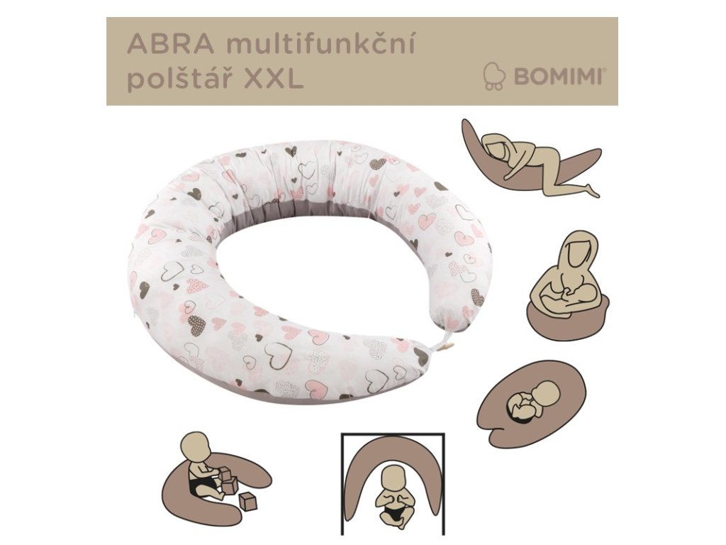 Bomimi ABRA Multifunkcionális párna XXL, HEART rózsaszín/szürke