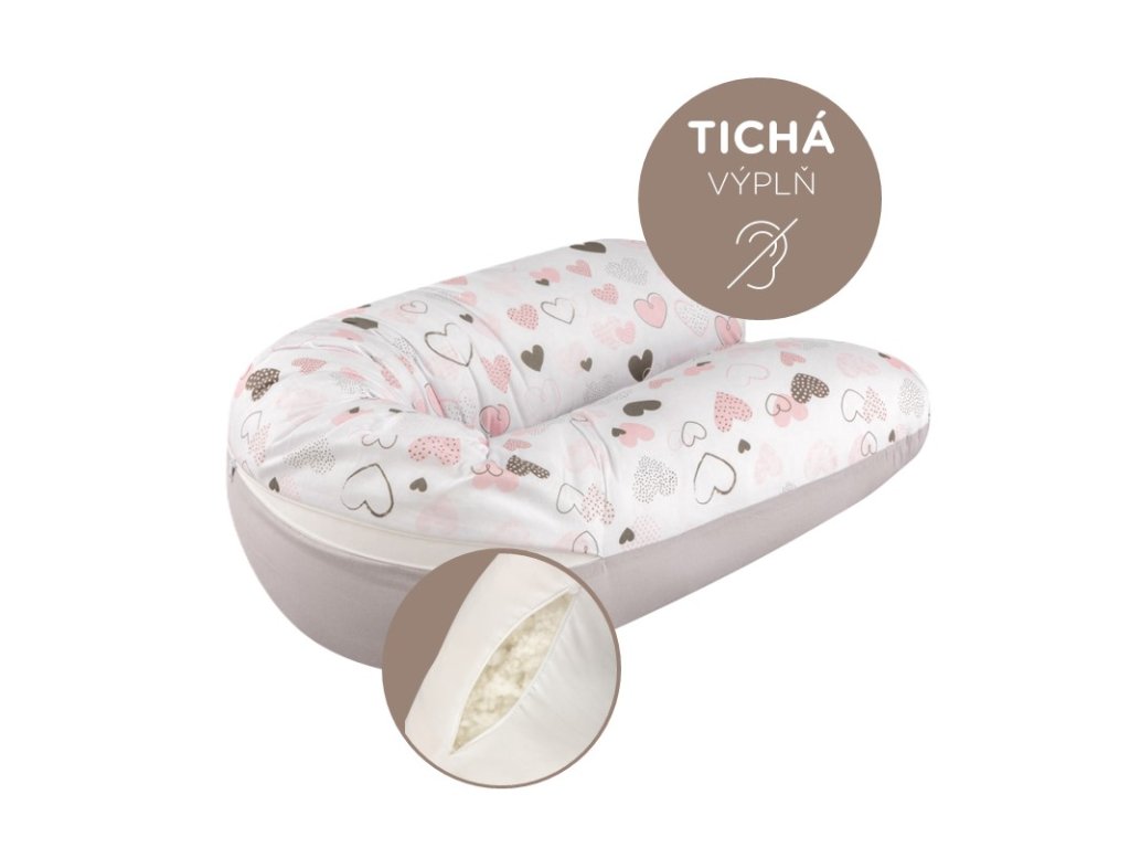 Bomimi ADOS Univerzális szoptatópárna 150x30, HEART rózsaszín/szürke