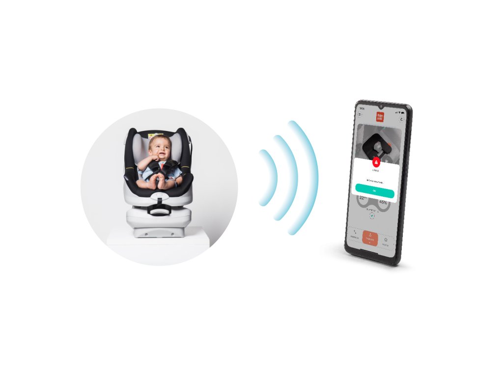 Hőmérséklet és páratartalom érzékelő // Méri a hőmérsékletet abban a térben, ahol a gyermekülés található, és a páratartalom-érzékelő figyelmezteti Önt egy lehetséges problémára (legyen az nedves pelenka, vagy meleg időben túl sok páratartalom).