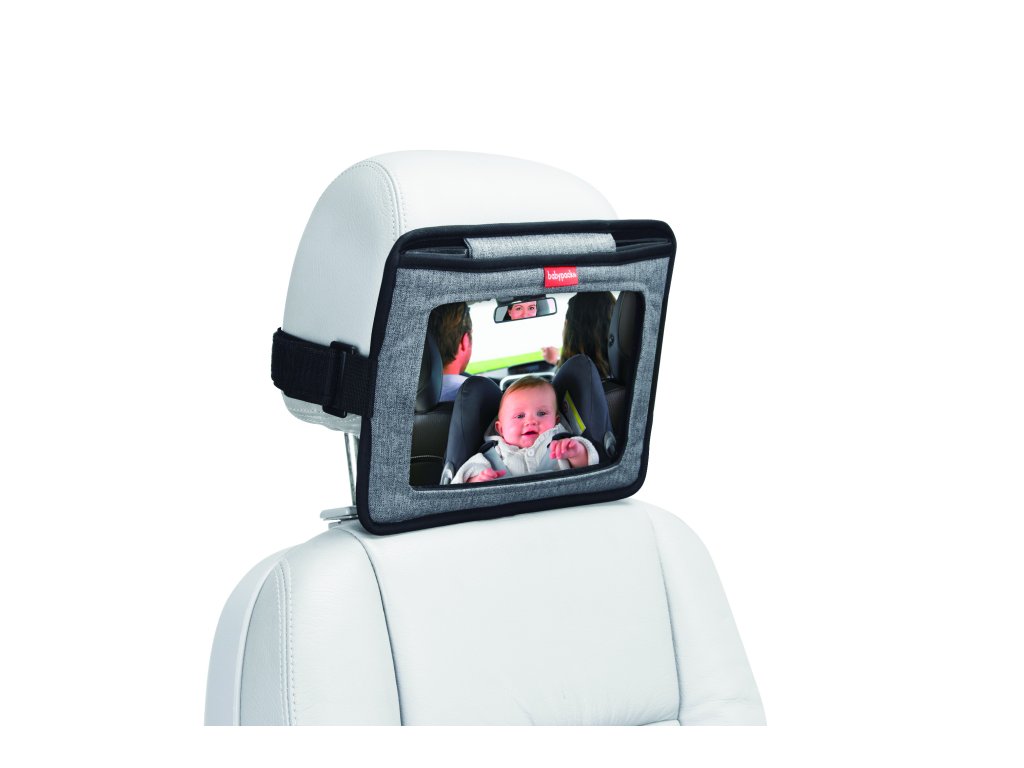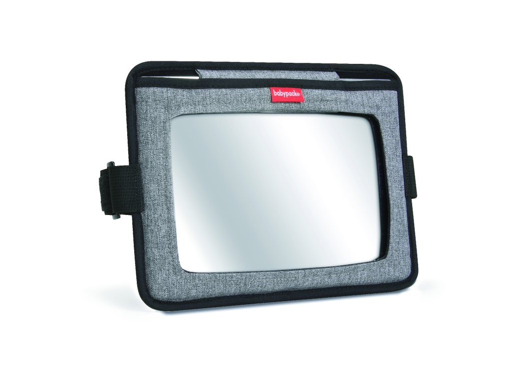 Az egyik oldalon egy tükör található, amely lehetővé teszi a gyermek szemmel tartását, amikor a gyermek menetirányba néz az autósülésben. A másik oldal praktikus iPad utazási tokként szolgál.