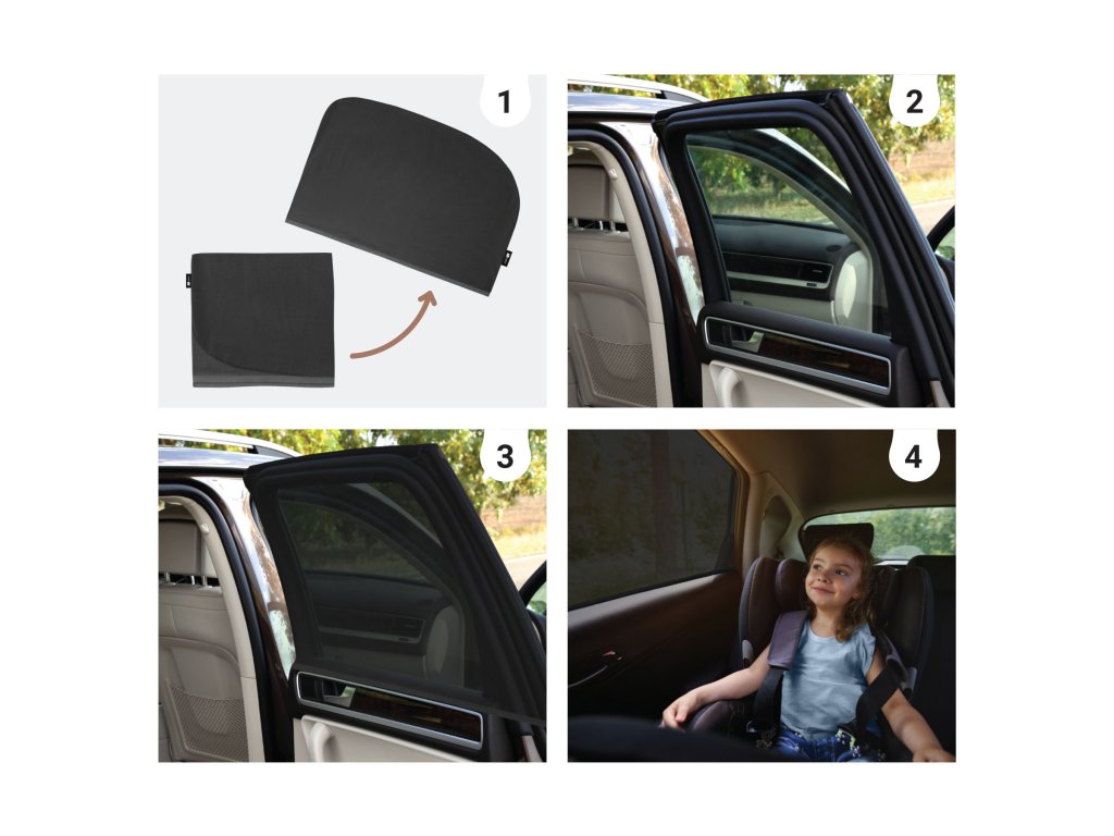 Praktikus, két hálós napellenzőből álló szett, amely az autó hátsó oldalablakainak árnyékolására szolgál. A terméket a hátsó ülésen utazó gyermekek kényelmét szem előtt tartva tervezték, és könnyű, mégis tartós poliészter anyagból készült. Hatékonyan blokkolja a napfényt azáltal, hogy lefedi a teljes ablakfelületet, csökkentve a hőképződést a belső térben, és növelve a hőkomfortot a forró napokon. A háló nemcsak a napfény ellen véd, hanem növeli a magánéletet az autóban, ami különösen hasznos olyan tevékenységekhez, mint a szoptatás.
