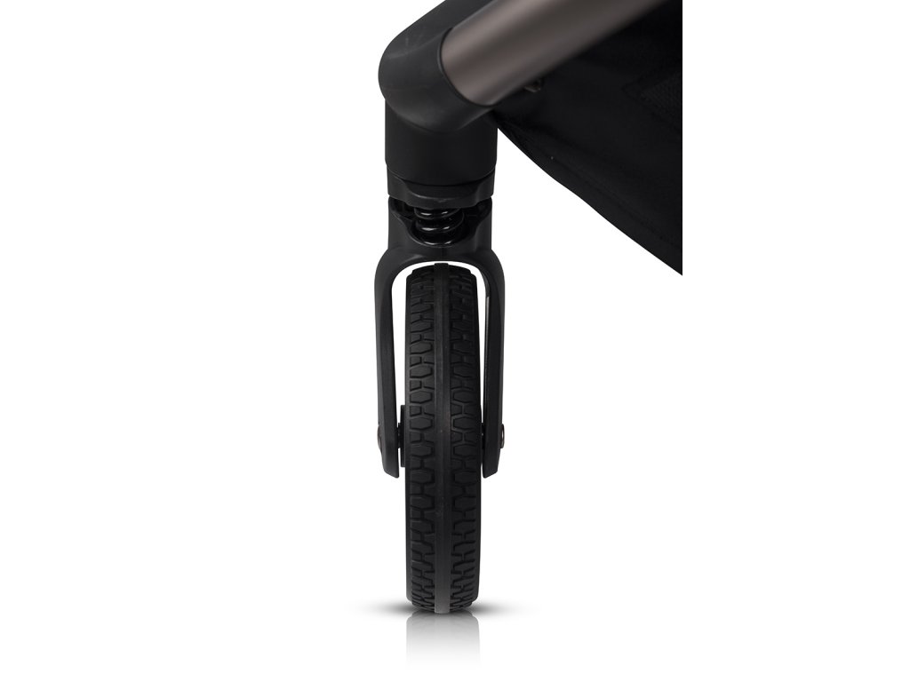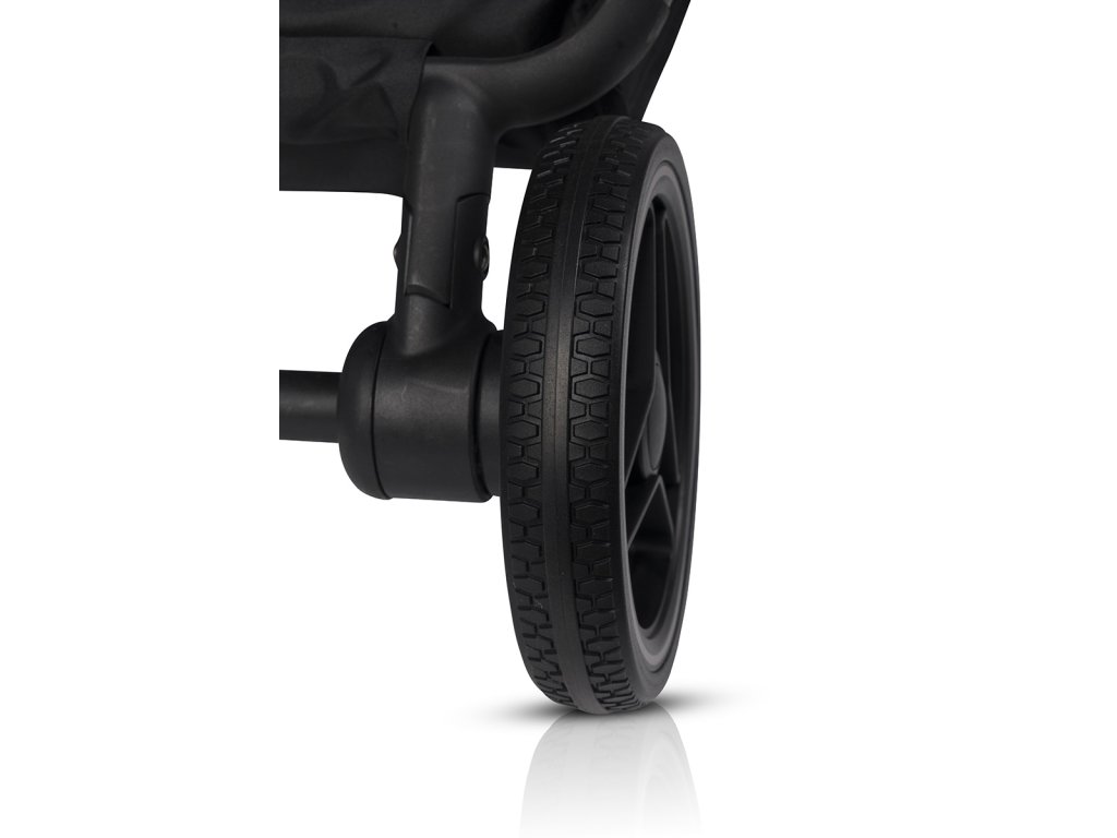 A széles első keréknyom kiváló manőverezhetőséget biztosít. Meglepődsz majd, milyen könnyedén veszi a kanyarokat. Egy kézzel is könnyedén kormányozhatod. A 15 cm átmérőjű, forgó, önkormányzó első kerekek és a 19 cm átmérőjű hátsó kerekek golyóscsapágyasak és poliuretánból készültek, ami csendes és sima futást garantál.