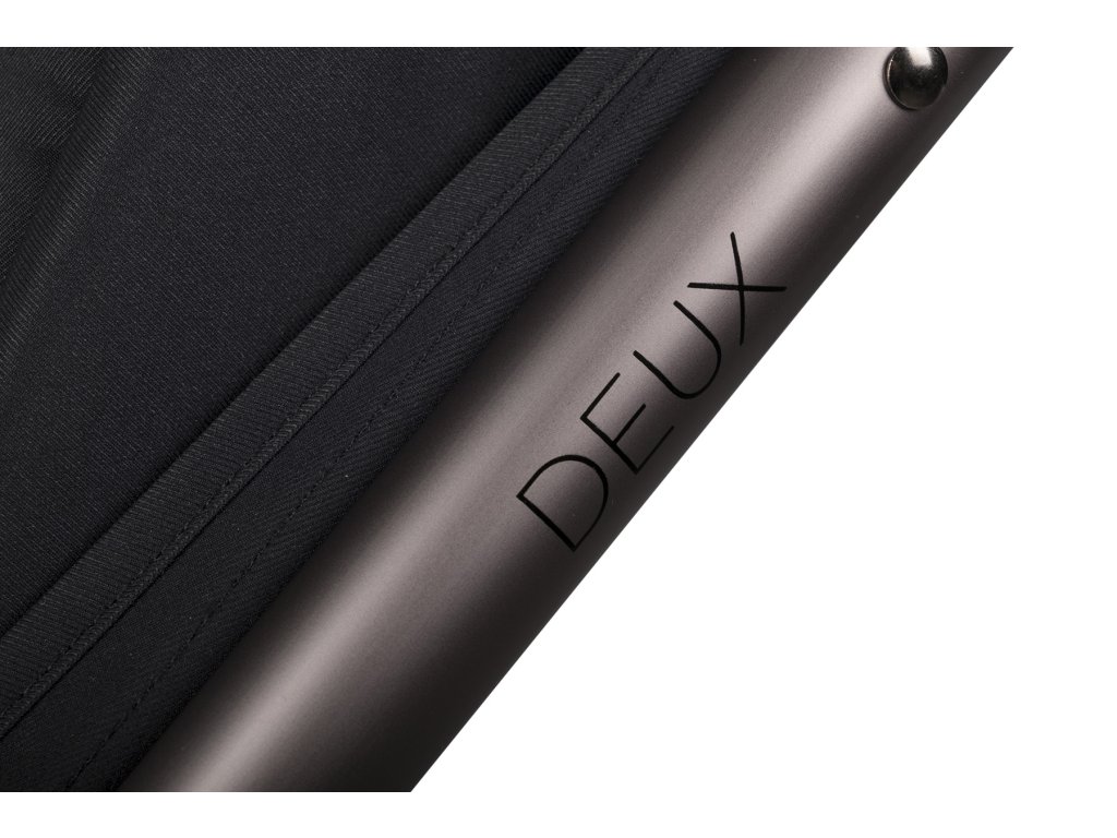 A DEUX egyedülálló automatikus összecsukórendszerrel van felszerelve, amelyet egy kézzel is működtethetsz. Egyszerűen aktiváld a mechanizmust, és told előre a fogantyút - a babakocsi automatikusan összecsukódik, mint egy inga, meglepően kompakt méretekre. Összecsukás után a babakocsi függőlegesen áll, és a korlát kényelmes hordozófogantyúként szolgál. Ez a rendszer hatalmas megkönnyebbülést jelent, különösen azokban a helyzetekben, amikor a babakocsit a csomagtérbe kell pakolni, és egyszerre két gyermeket kell felügyelned. Az ikrek számára babakocsi összecsukása még soha nem volt ilyen egyszerű.