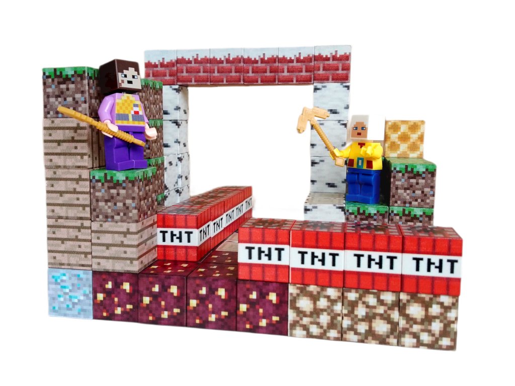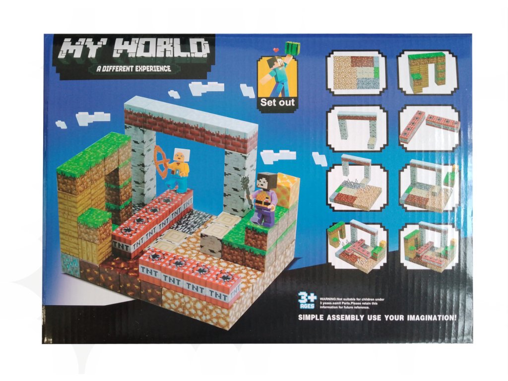 A csomagban megtalálod98 mágneses kocka a játékvilágból ismert különféle textúrákkal Minecraft – nem hiányzik fű, fa, kő, láva még csak nem is ikonikus TNT blokkok, amelyek feszültséget és kalandot visznek a jelenetbe. A kockák könnyűek, tartósak és erős mágnesekkel vannak felszerelve, így könnyen összeilleszthetők. A gyerekek maguk építhetik meg dinamikus környezet tele csapdákkal, portálokkal és titkos alagutakkal. Két mellékelt figura szerszámokkal Életre keltik a történetet és végtelen játékforgatókönyvekhez indítják be a képzeletet.